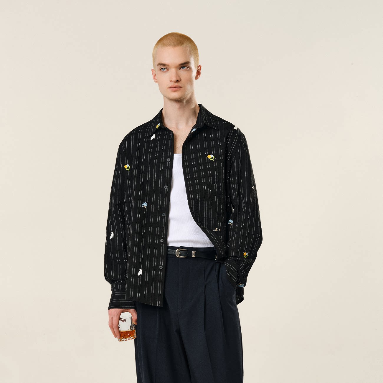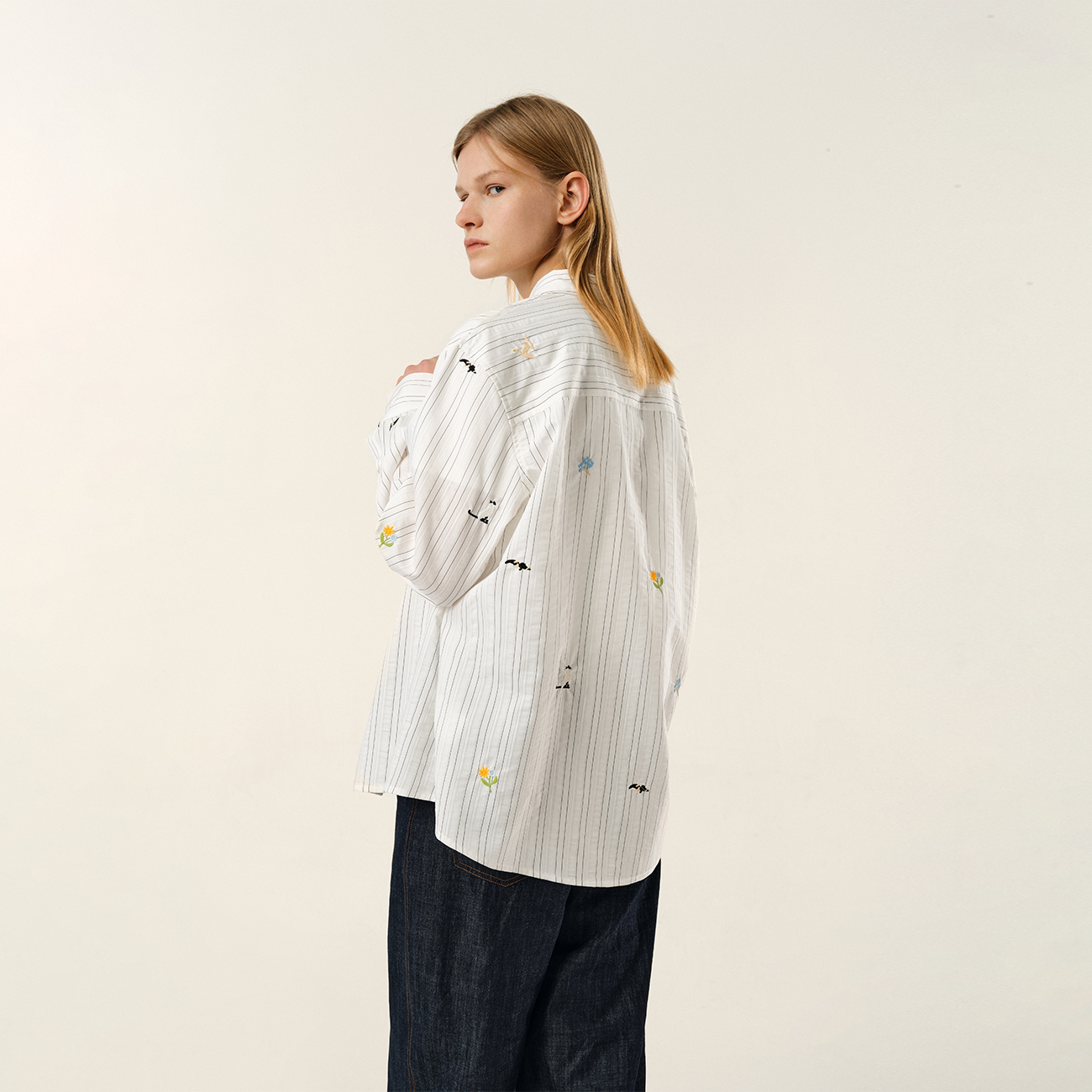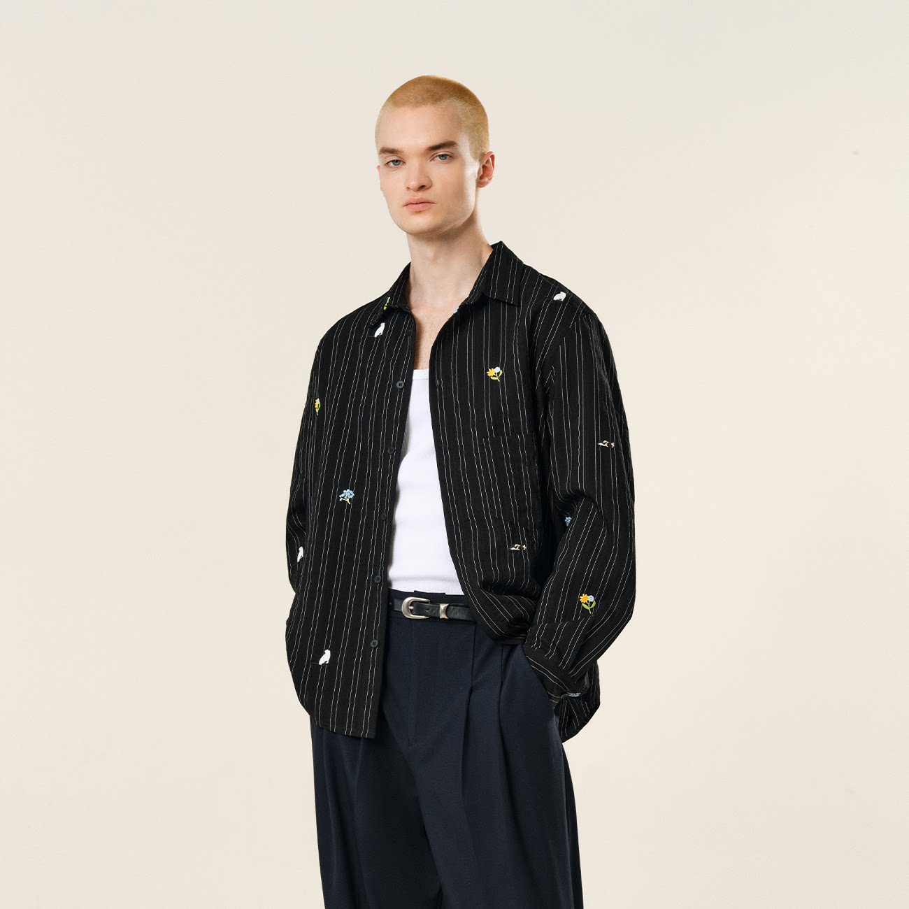 📚 ATRY刺绣条纹衬衫男士春夏新款美式复古设计感休闲翻领长袖外套女