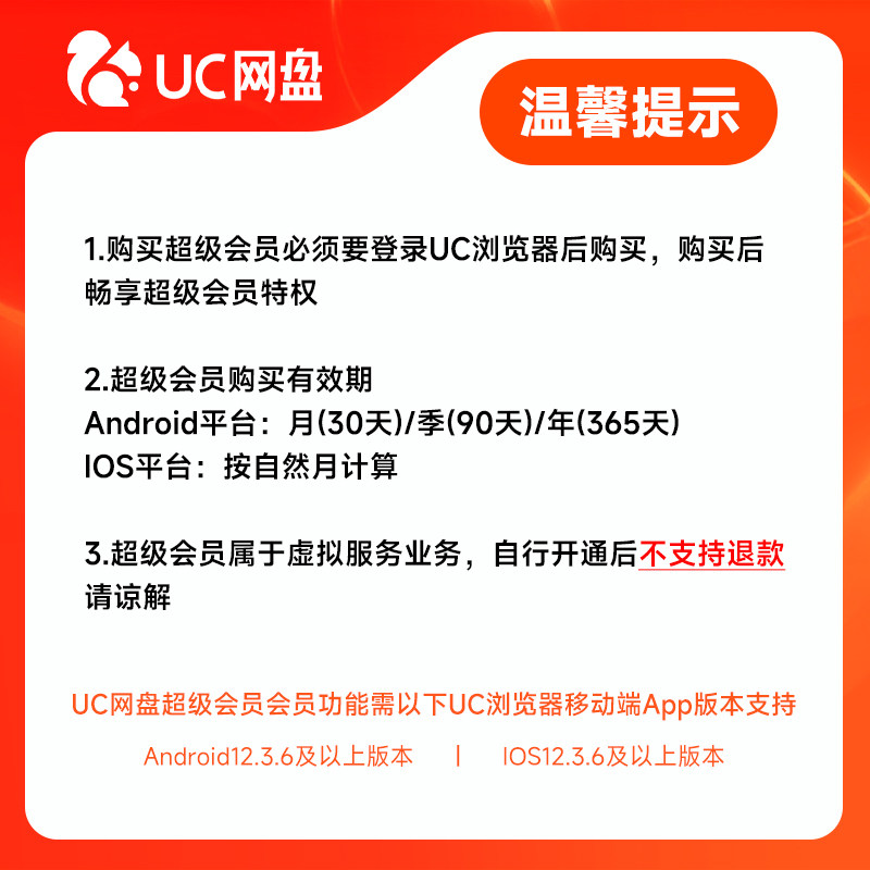 📚 UC浏览器 网盘超级会员月卡到年卡 uc网盘vip无限流畅播云收藏