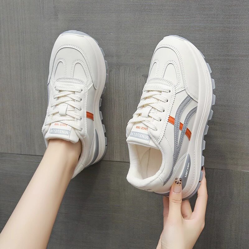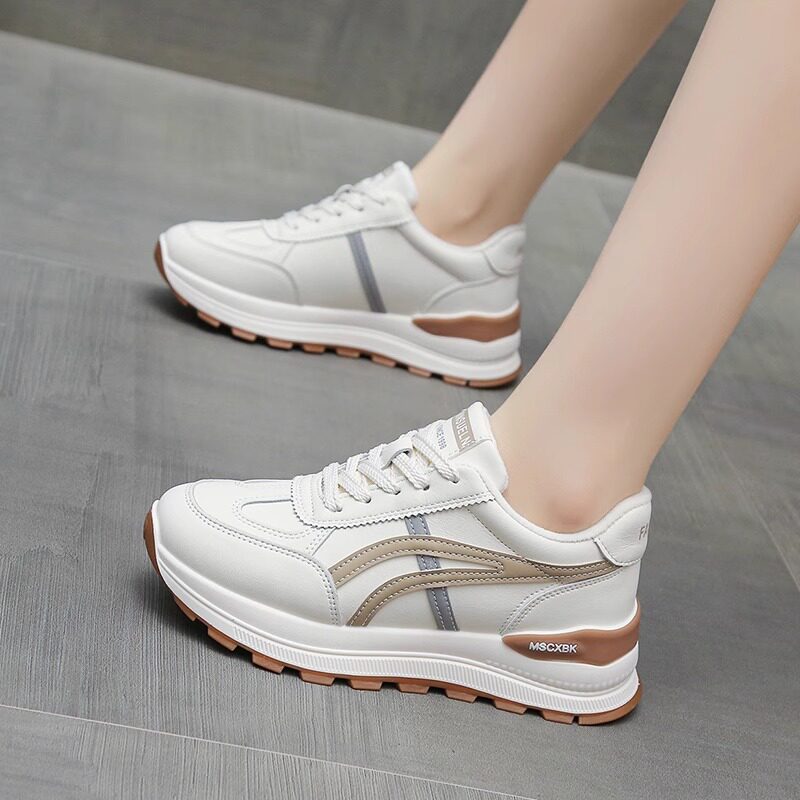 📚 品牌撤柜真皮轻便运动鞋女2026春新款百搭休闲小白鞋显脚小老爹鞋