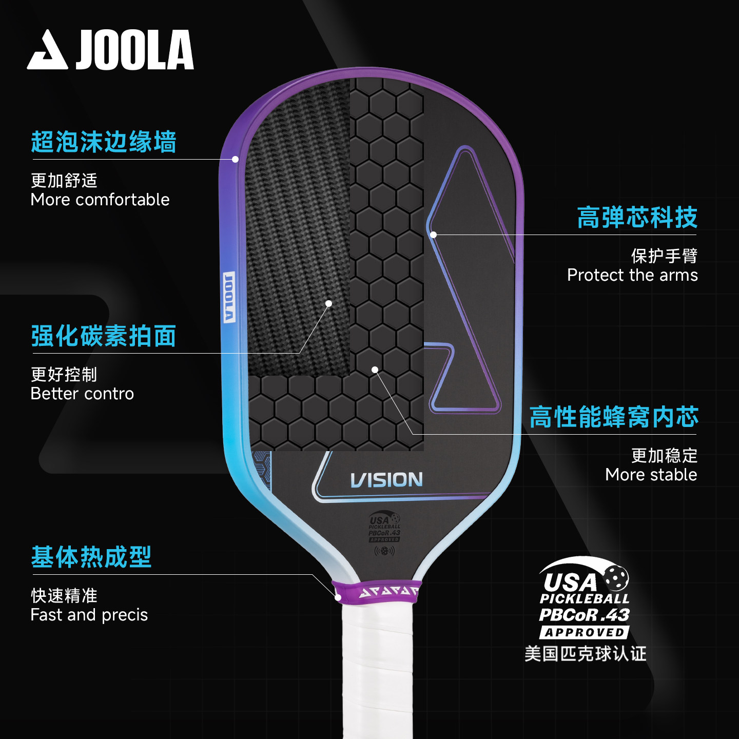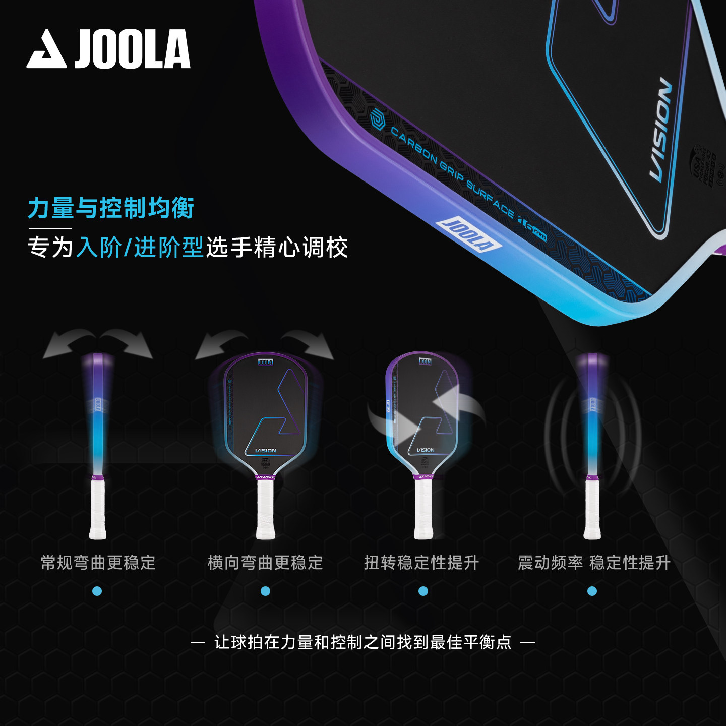 📚 JOOLA尤拉Vision匹克球拍板碳纤维专业进阶均衡型USAPA认证匹克球