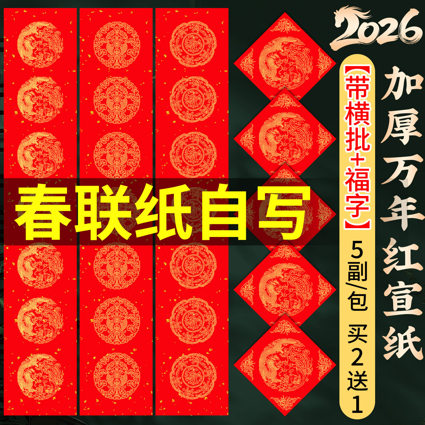 📚 对联专用纸加厚春联对联纸万年红对联纸2026年新款对联纸空白手写马年新款五言七言红色对联春节福字斗方自写