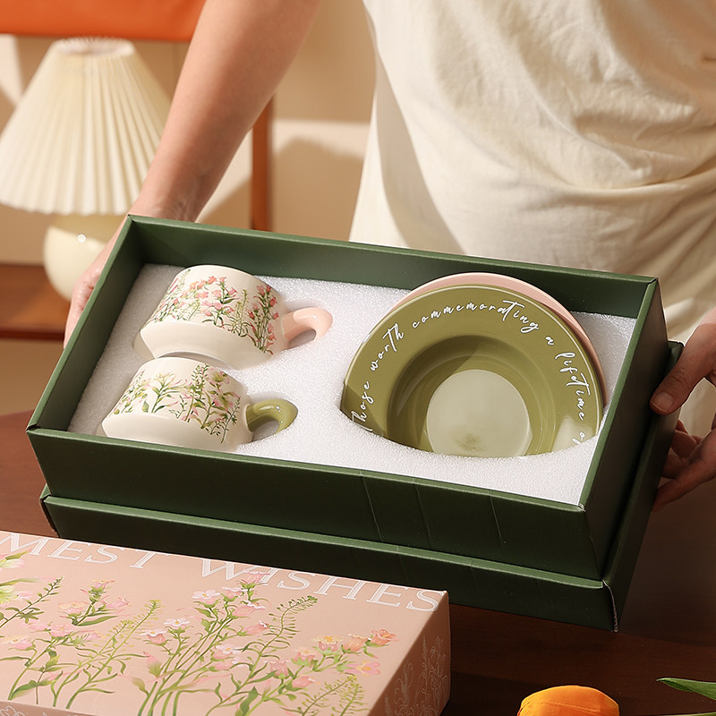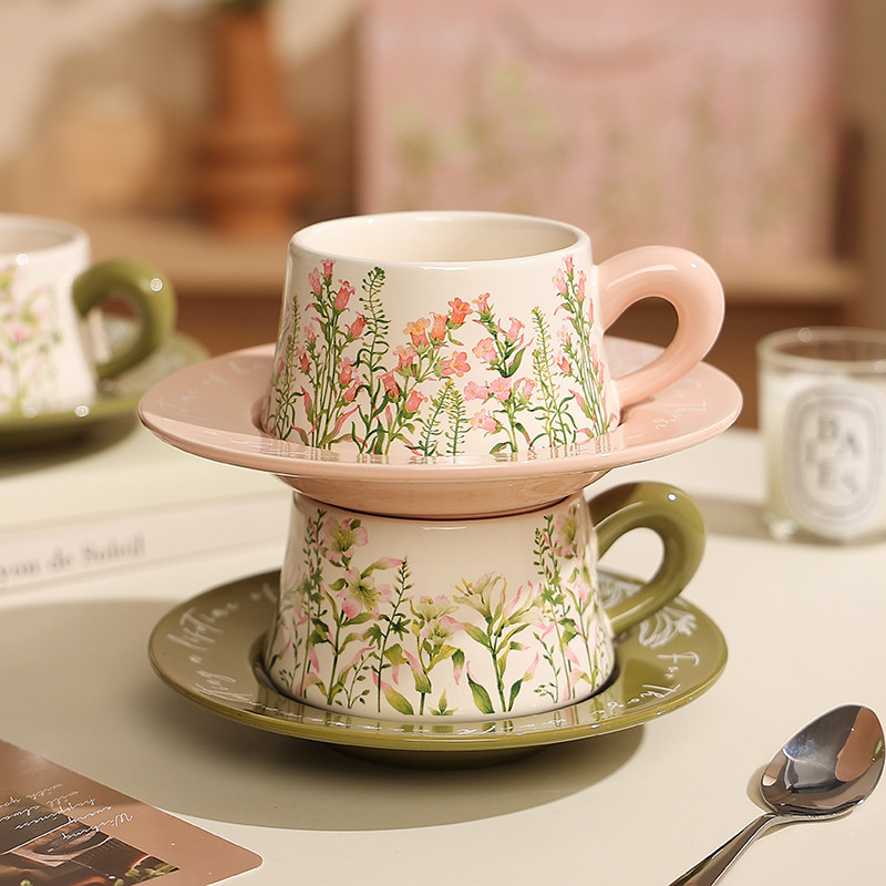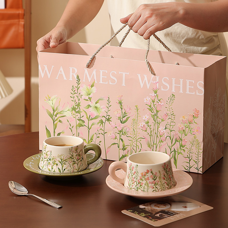 📚 风铃百合陶瓷咖啡杯子高档精致杯碟套装情侣对杯新婚结婚生日礼物
