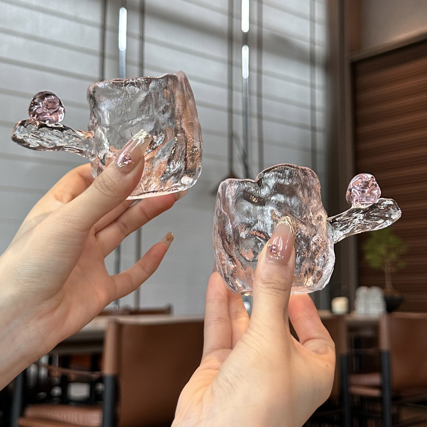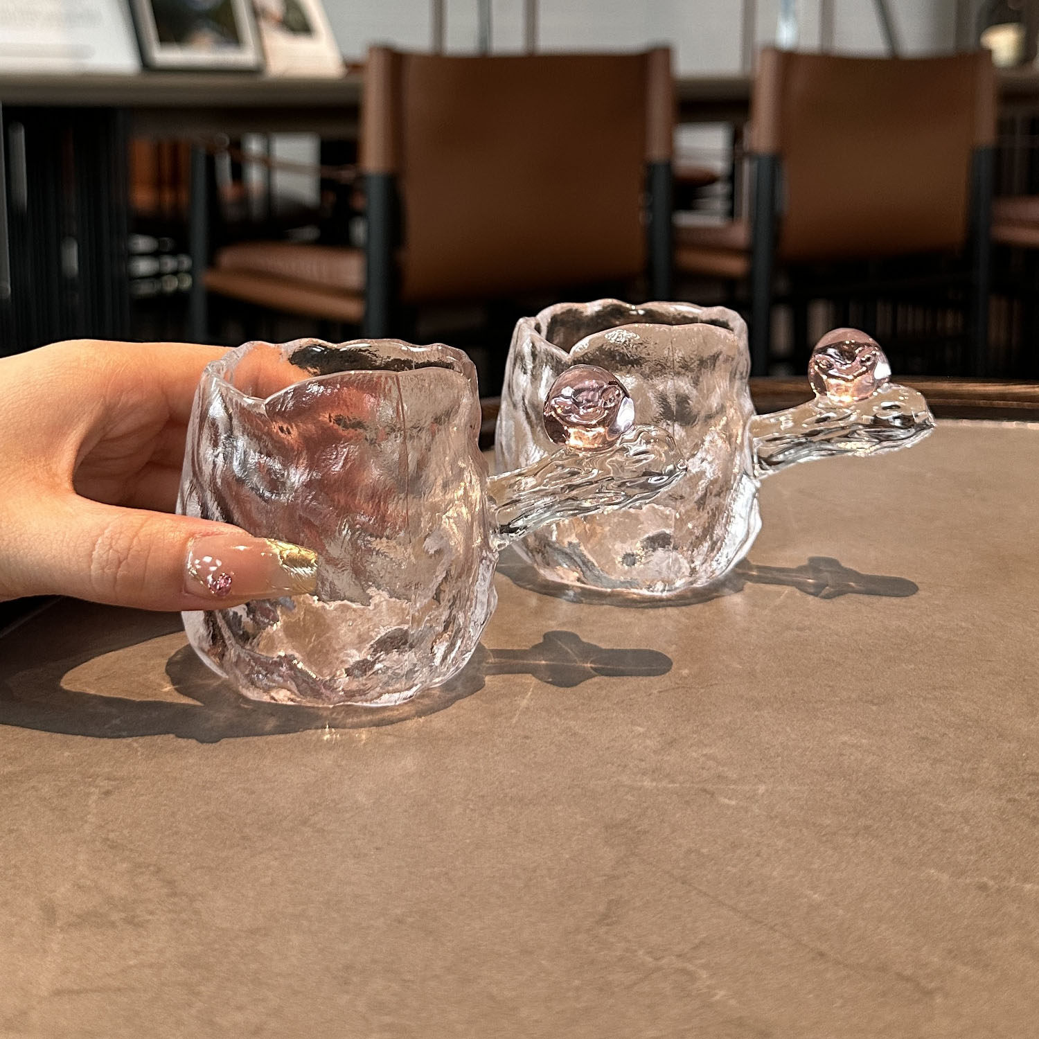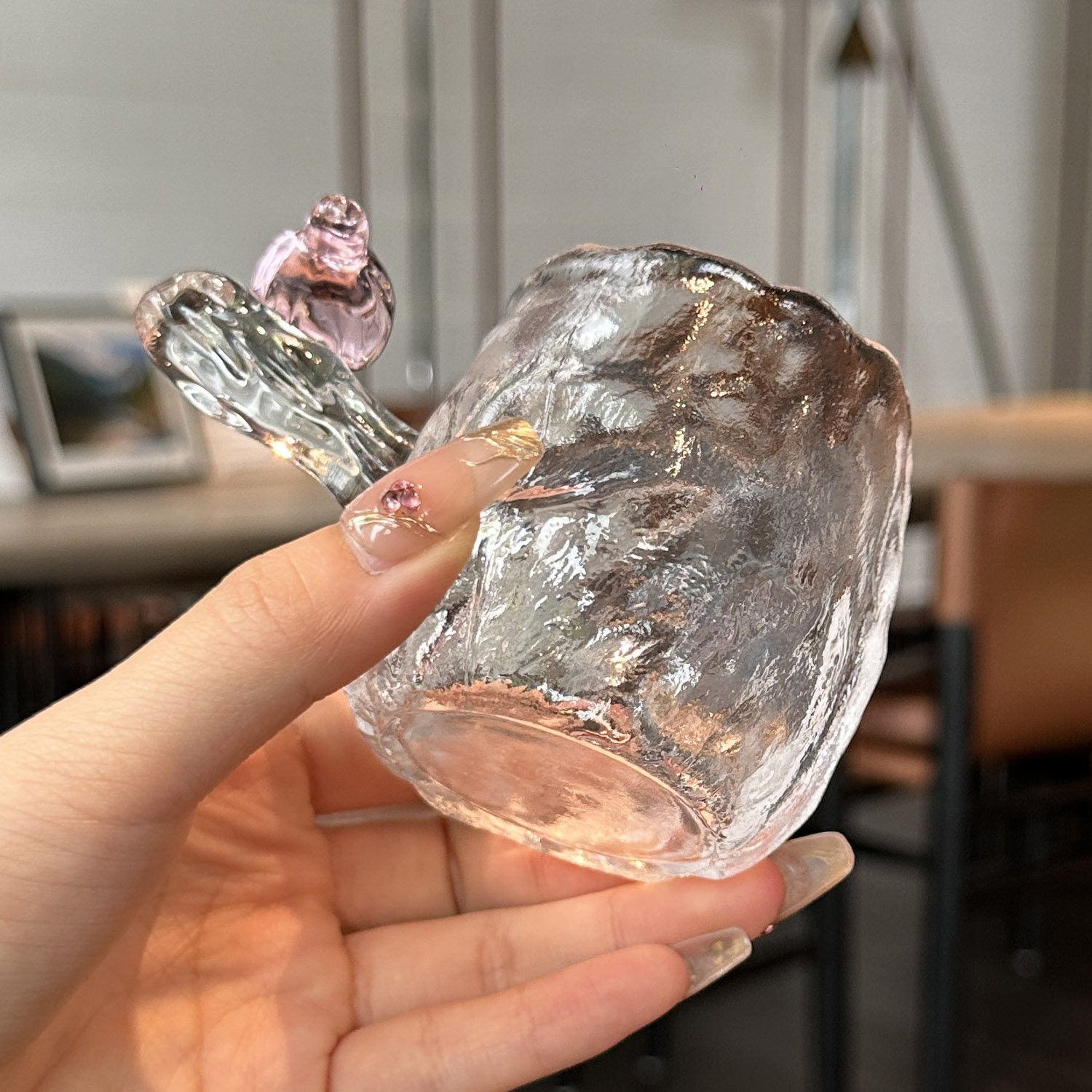 📚 *老板娘自用*水晶玻璃品茗杯小鸟侧把杯耐热茶杯主人杯手工锤纹