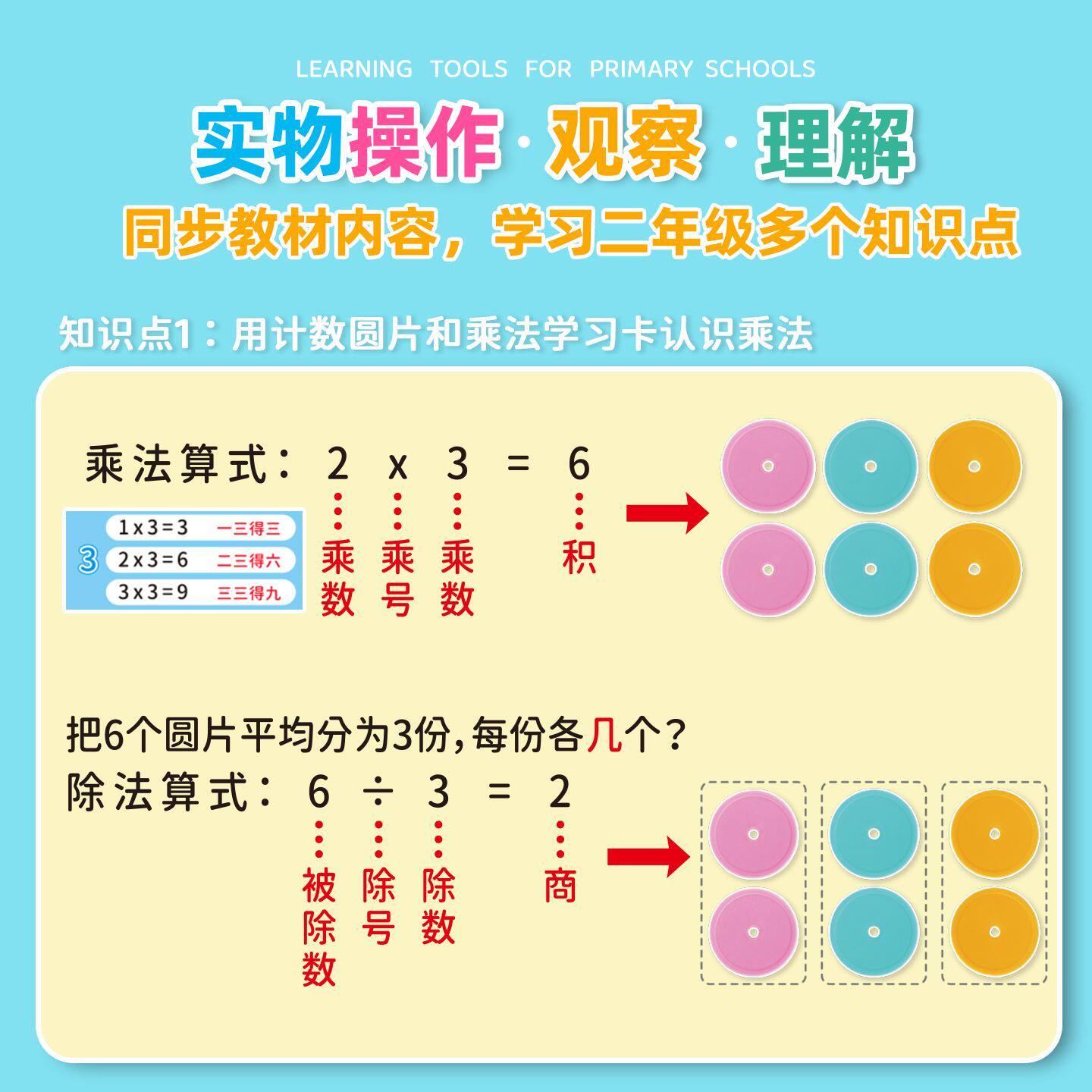📚 乘除法学习套装二年级上册数学表内九九乘法口诀背诵神器转盘教具