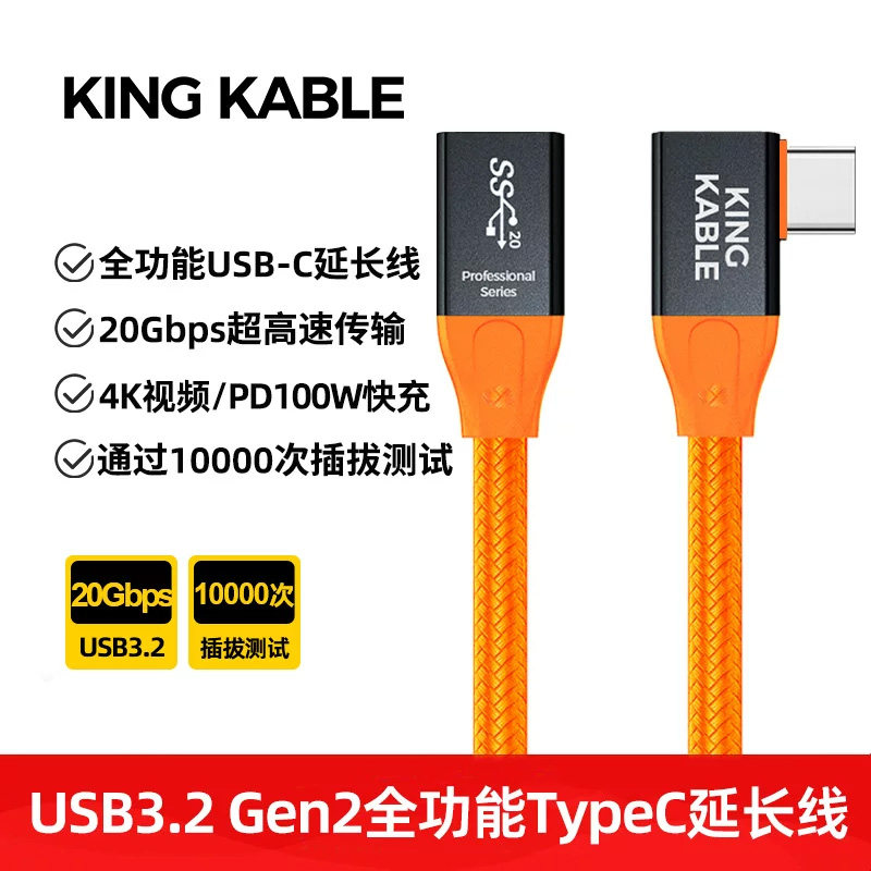 📚 KingKable超高速USB3.2 Gen2x2全功能TypeC数据线弯头USB3.1公对母延长线取代固线器适用于富士佳能索尼相机