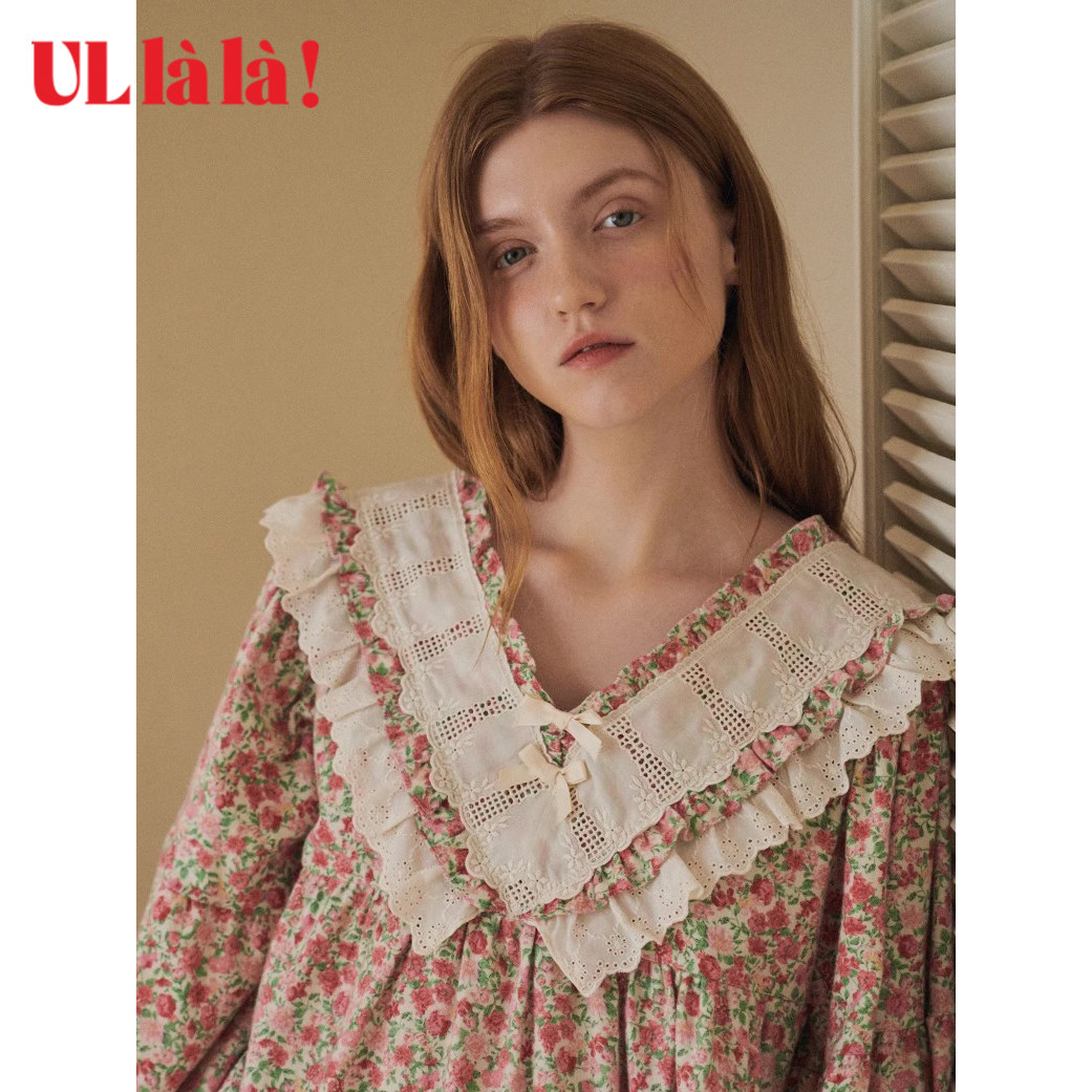 📚 Ullala乌拉拉韩国进口睡衣女秋款甜美减龄长袖长裤家居服纯棉套装
