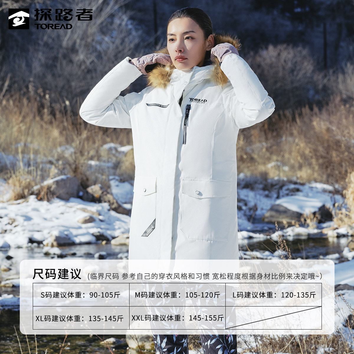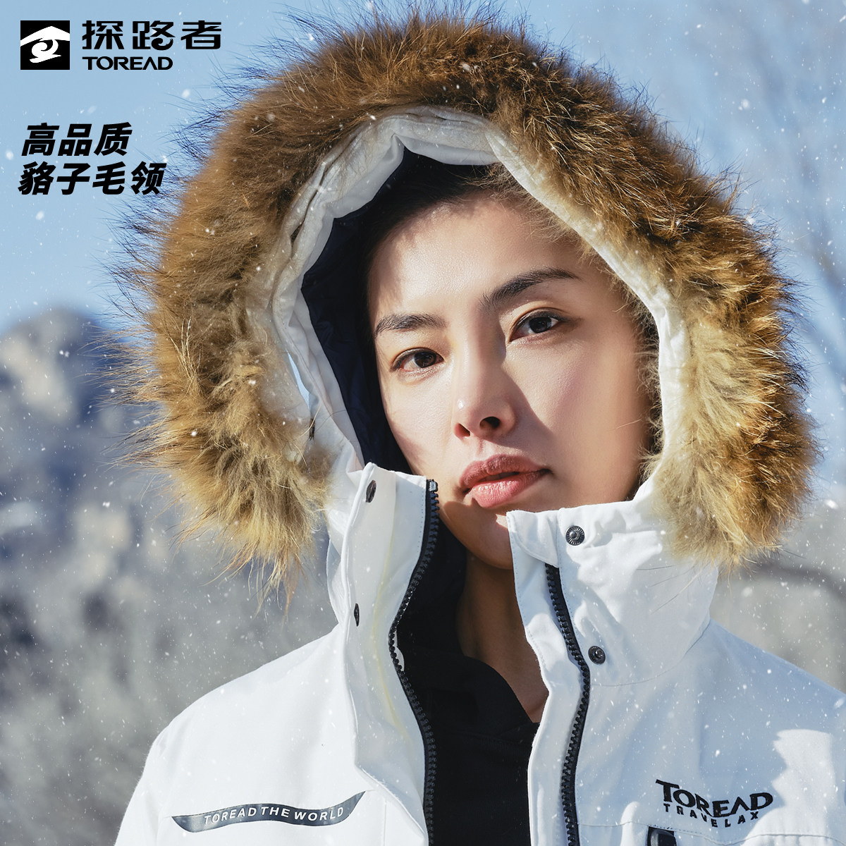 📚 探路者羽绒服女秋冬户外毛领工装外套防风保暖鸭绒女士派克服大衣