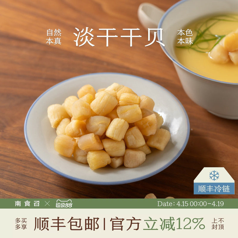 📚 南食召 淡干干贝 新鲜海捕扇贝 自然海味 海产瑶柱扇贝柱干货200g
