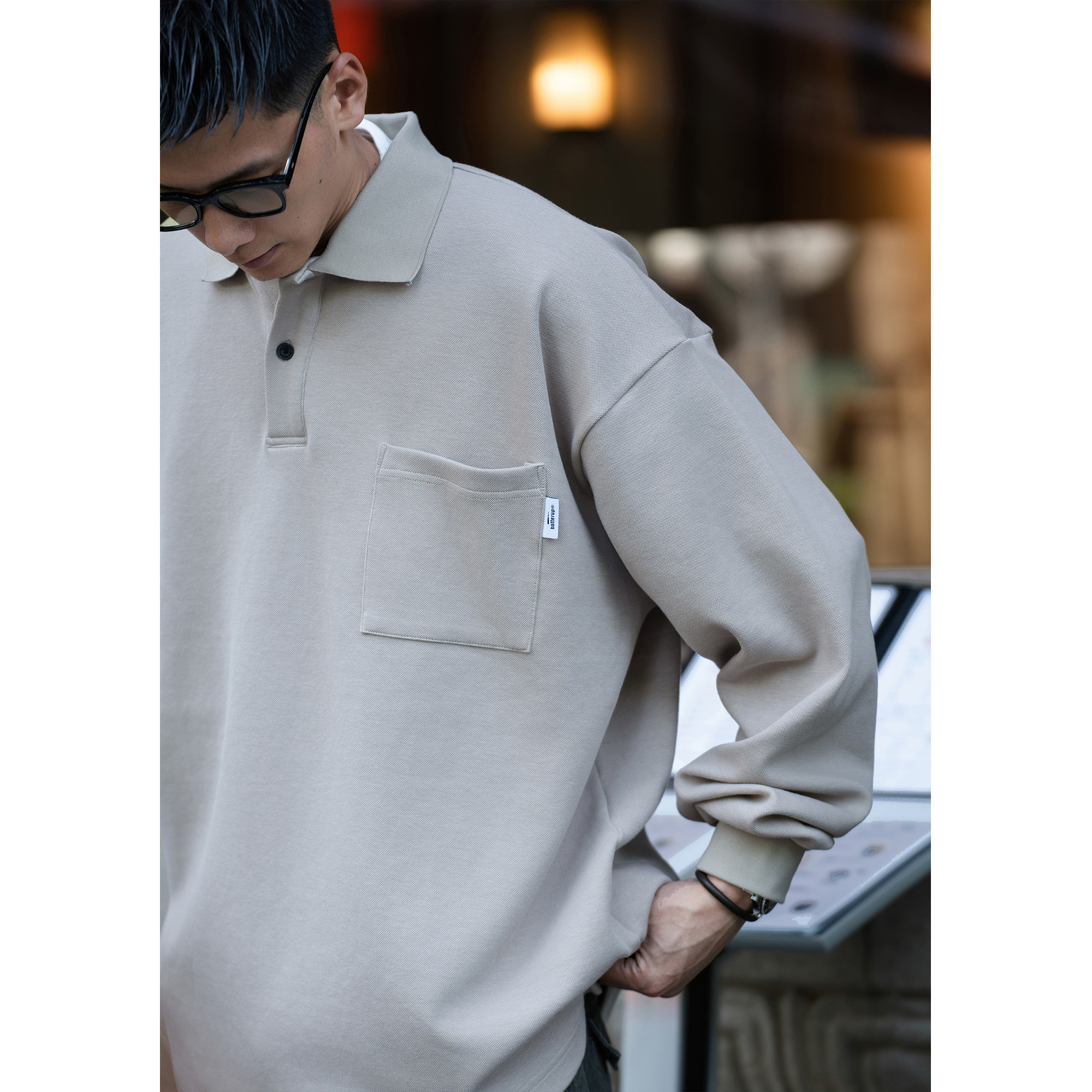 📚 BatterUp2025新款早秋外套上衣日系宽松简约休闲长袖polo衫男款