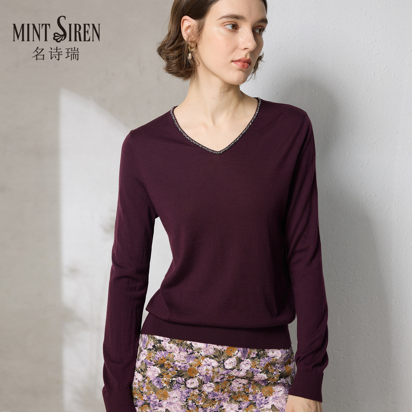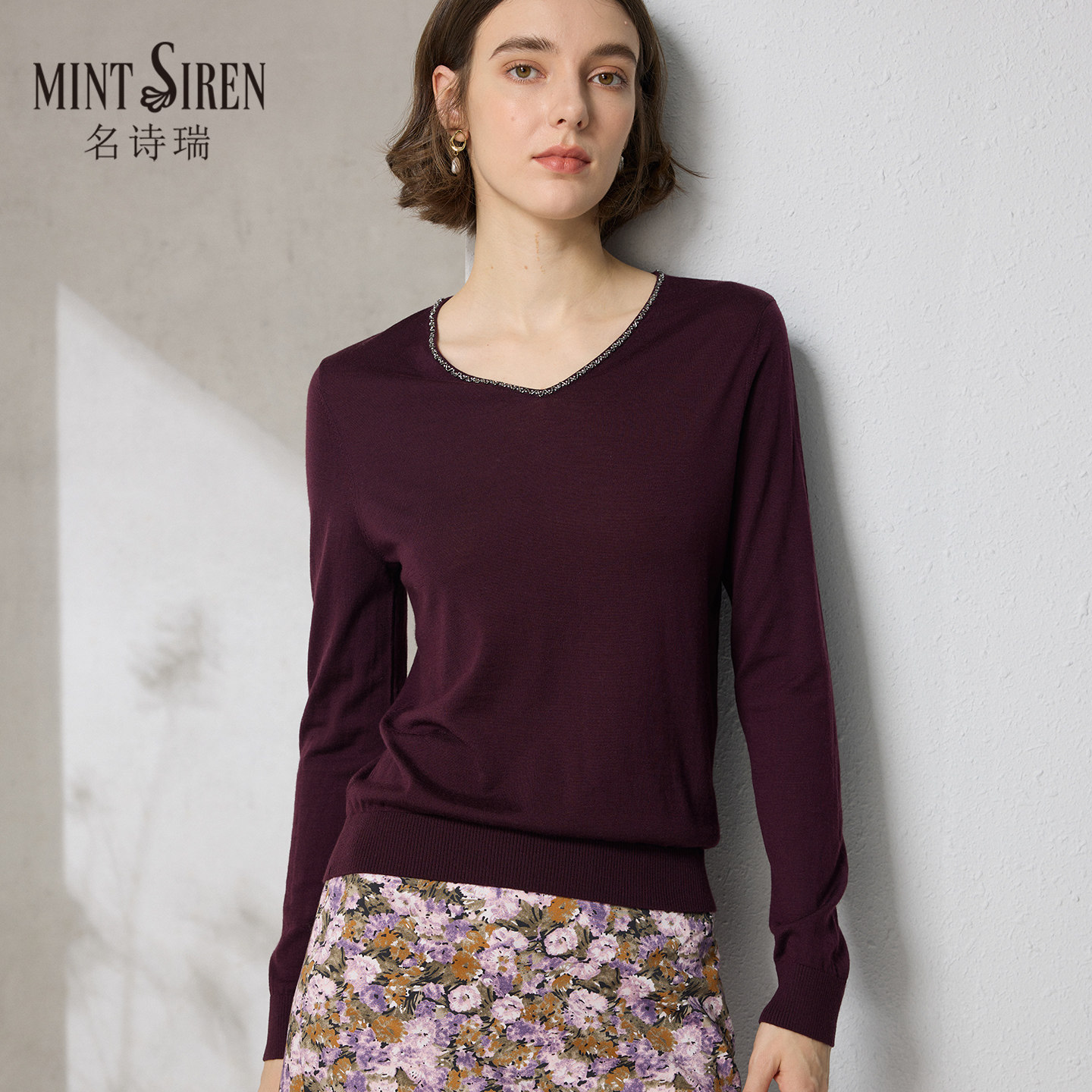 📚 秋冬V领长袖薄款内搭短款扬子纱纯羊毛衫气质上衣精纺打底针织衫
