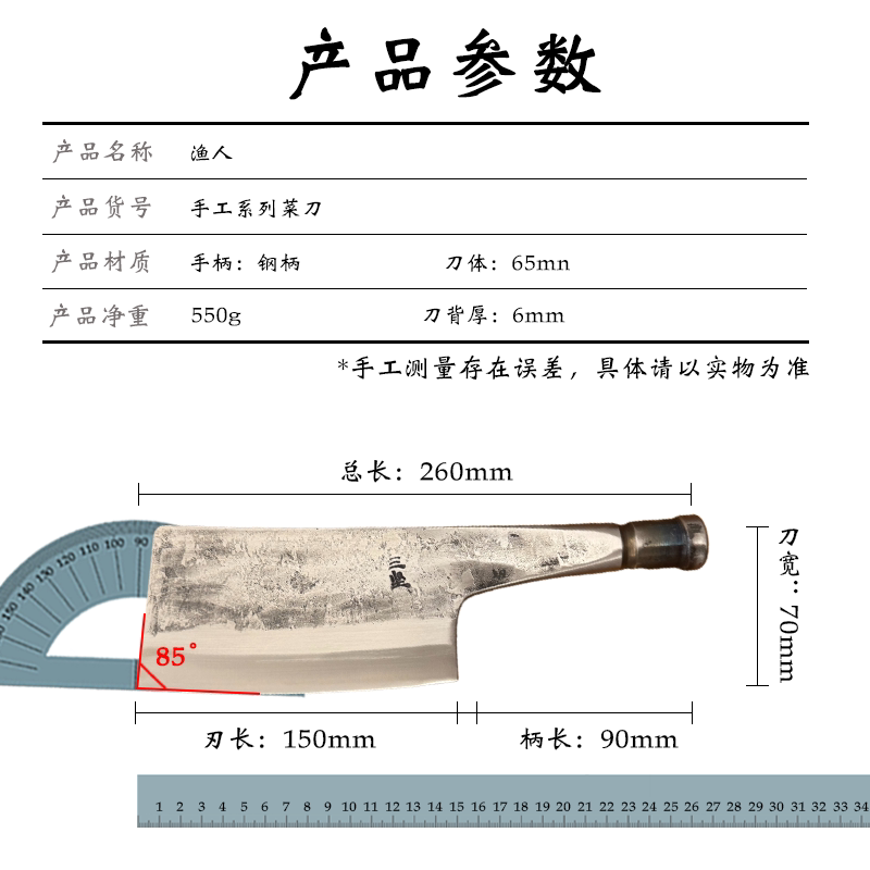 📚 三坚手工锻打履带销钉家用户外钓鱼杀鱼专用锋利切片斩切两用菜刀