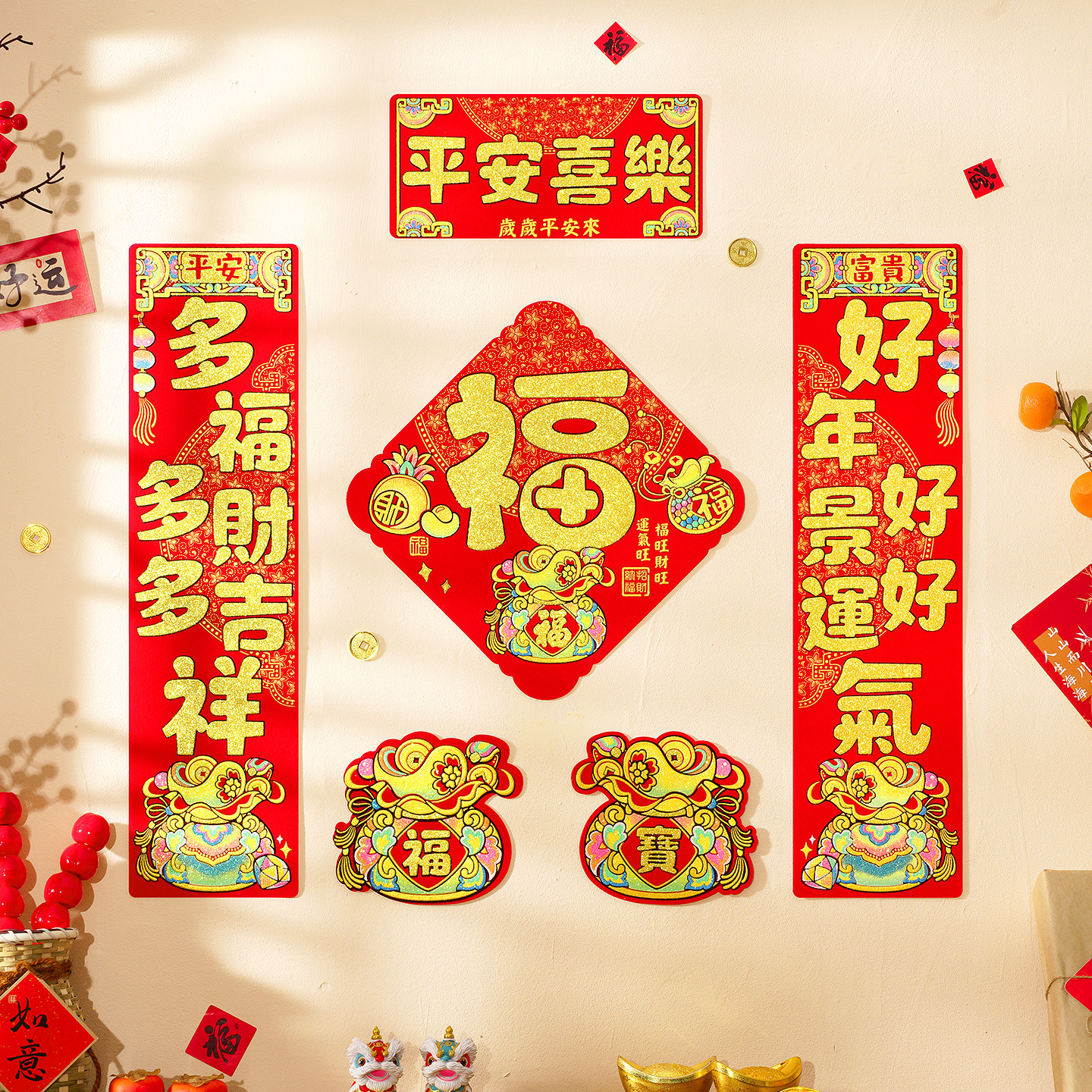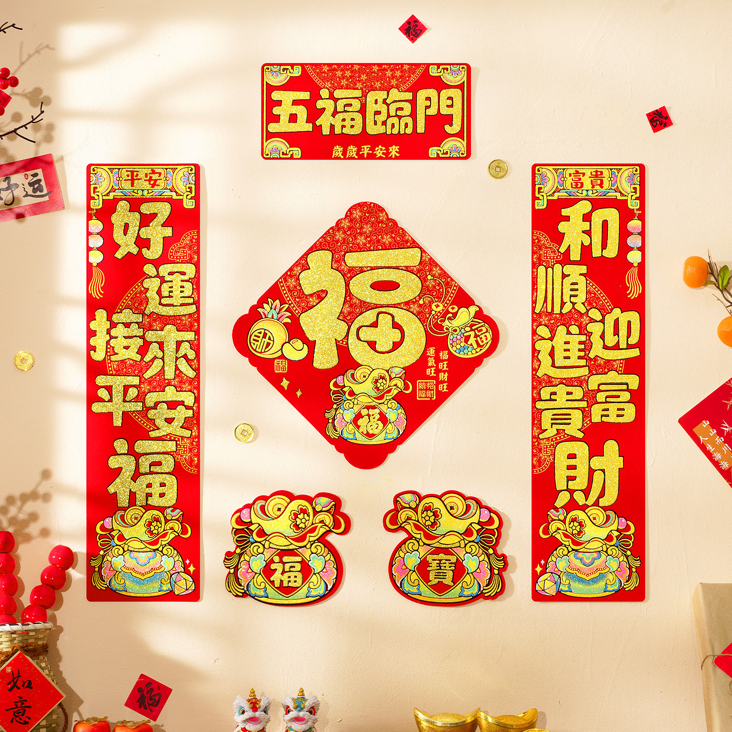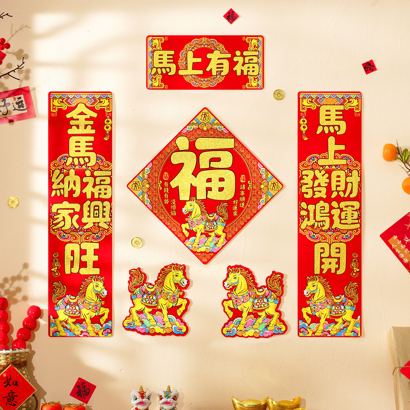 📚 马年创意卡通磁吸入户门小对联2026新款绒布福字春联新年房门装饰