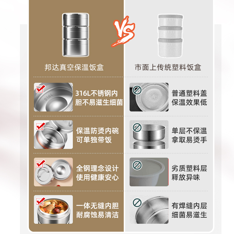 📚 保温饭盒316L不锈钢上班族便当盒2026新款小学生带盖餐盒装汤壶碗