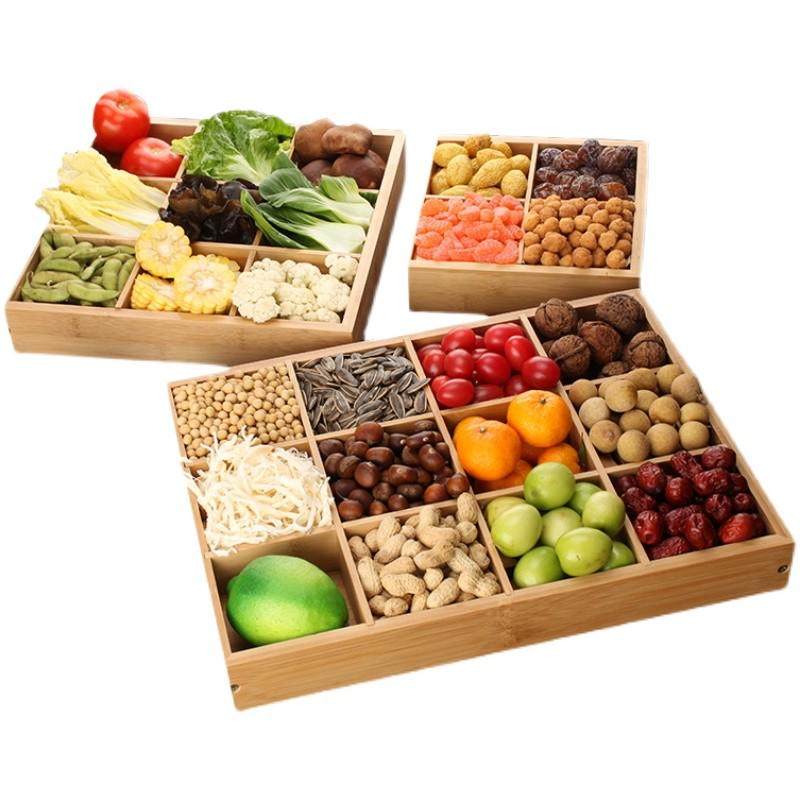 📚 日式九宫格托盘六宫格餐具火锅配菜盘木质格子拼盘木盒竹盘小碟子