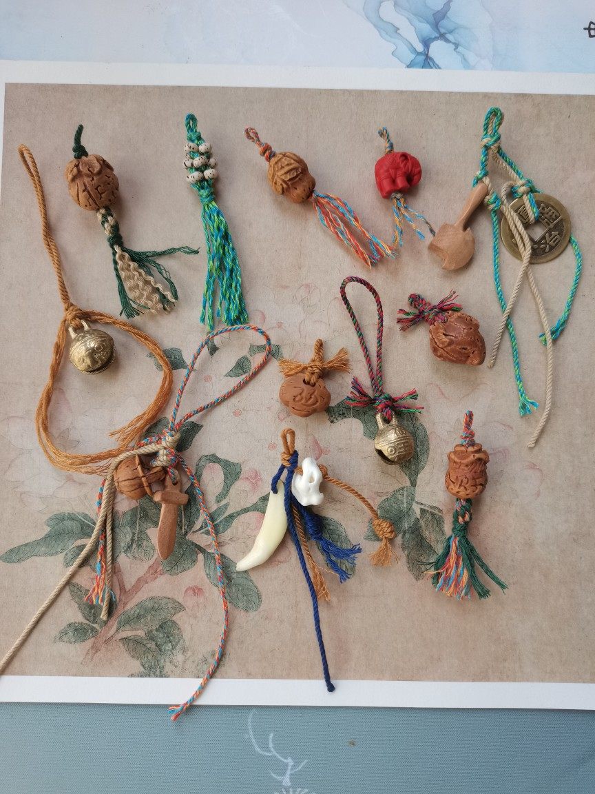 📚 手串配饰迷你小流苏纯手工编制文玩手搓棉线棉桃核狗牙铜铃铛铜钱