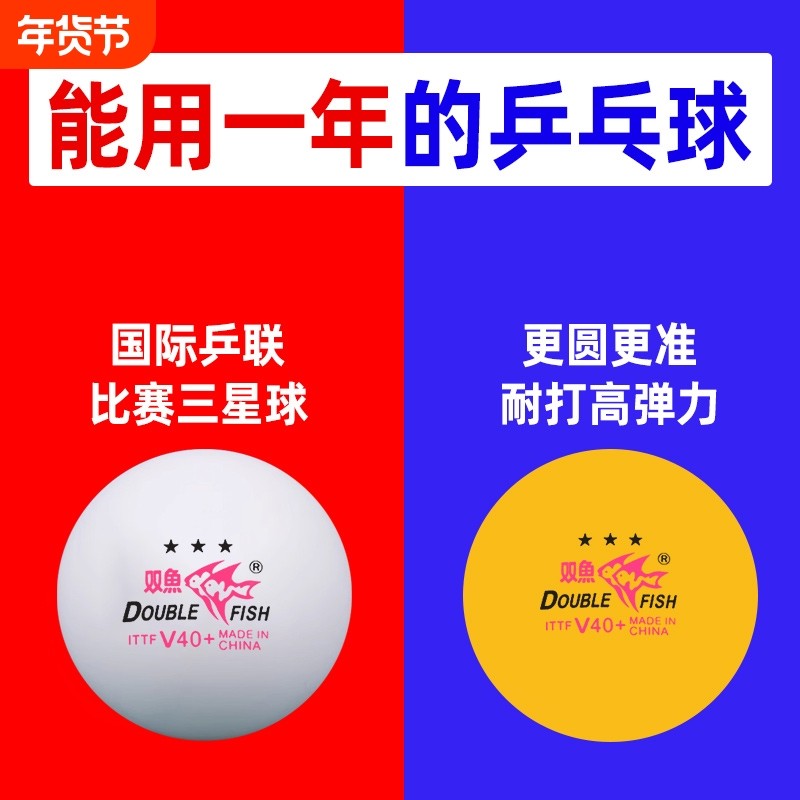 📚 双鱼乒乓球比赛系列V40+三星球比赛用球无星一星训练球耐打高弹力