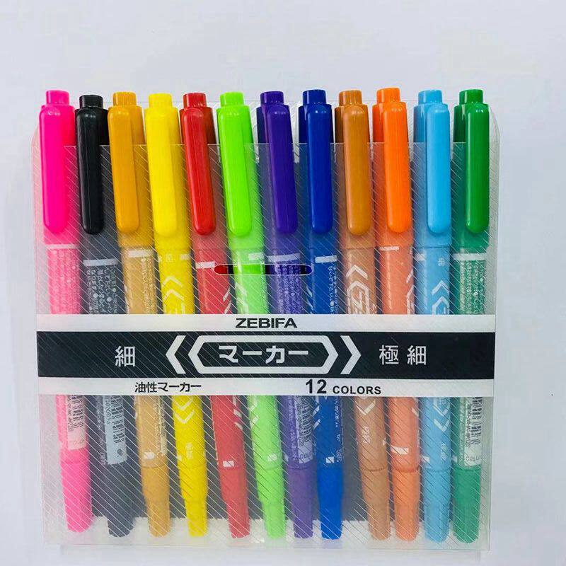 📚 包邮12色小双头笔记号笔勾线笔物流笔彩色油性笔黑色小记号笔画笔