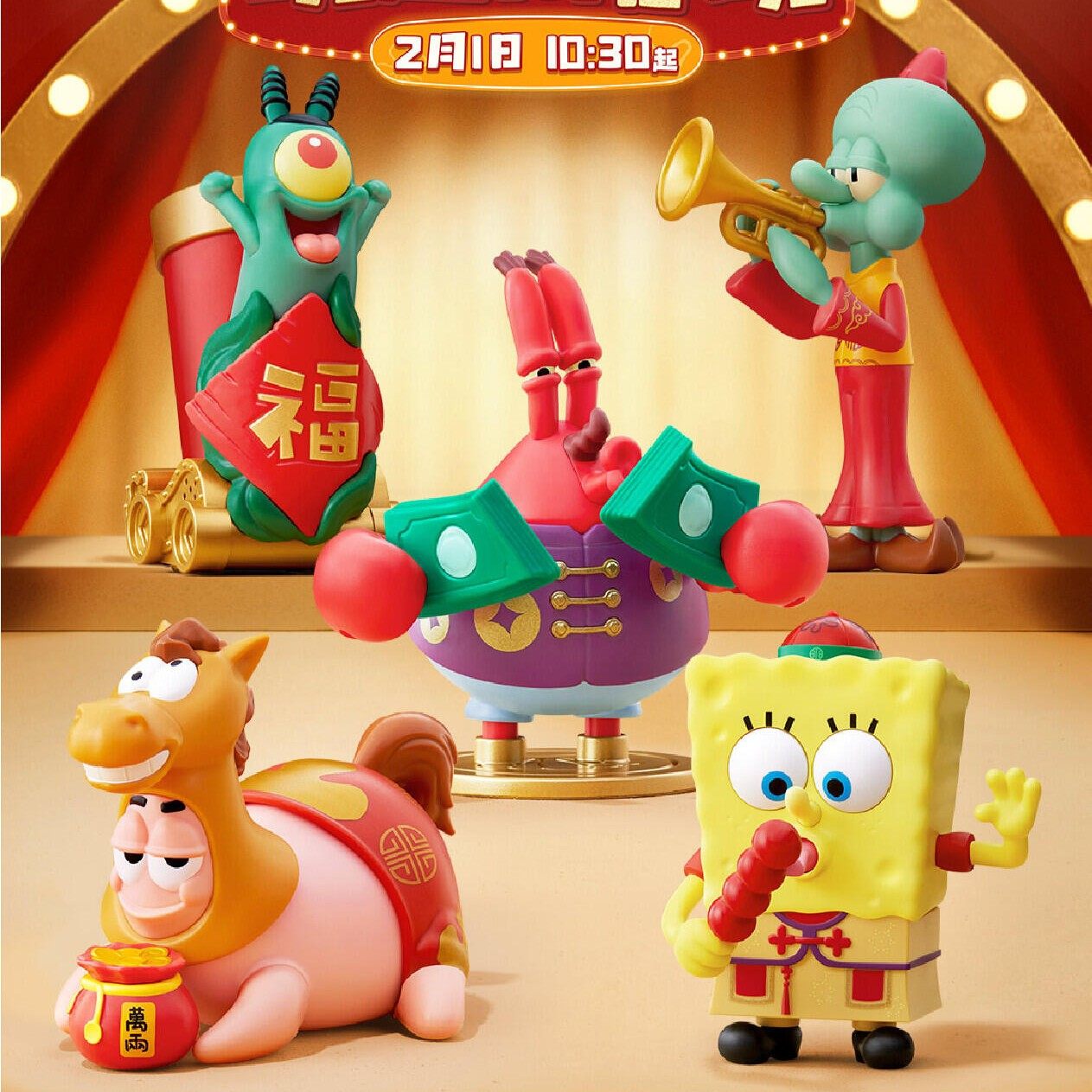 📚 2026年新春款肯德基海绵宝宝派大星玩具章鱼哥发财树蟹堡王发牌机