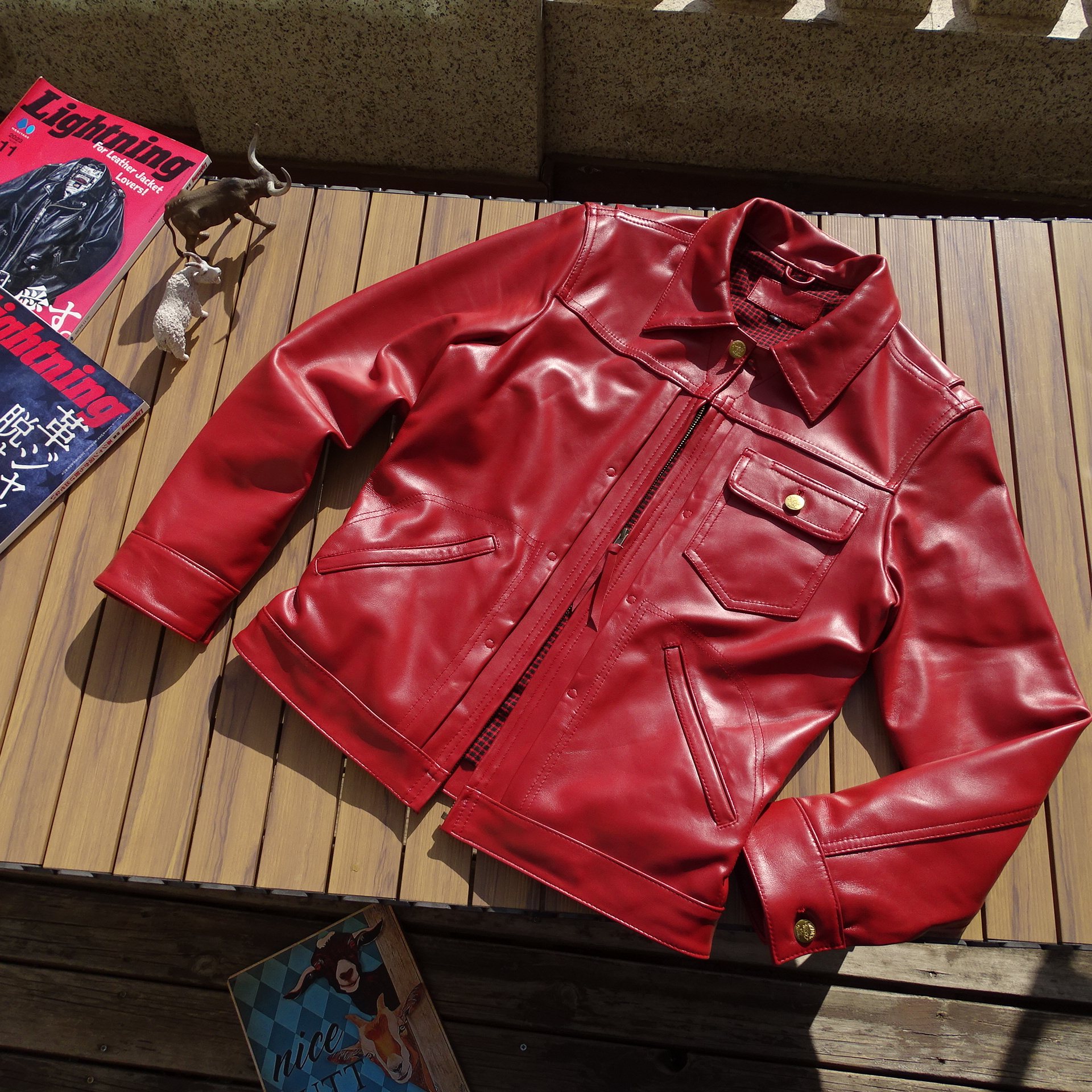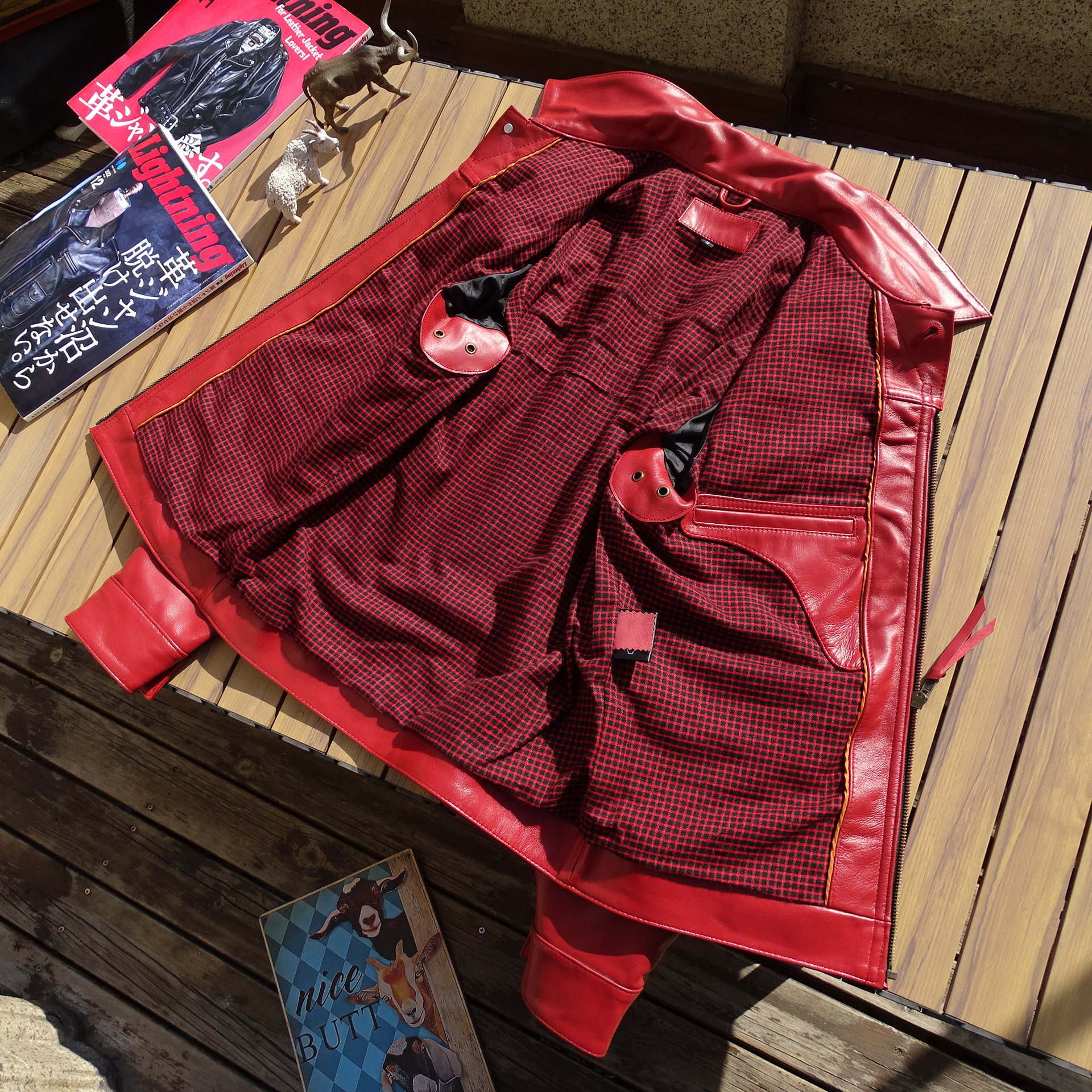 📚 赔本抛售【稀罕红色】日版做褶拉链牛仔男女意产绵羊皮真皮皮衣