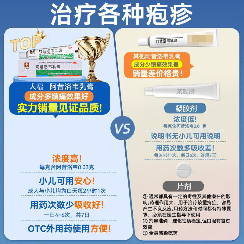📚 阿昔洛韦乳膏抗病毒疱疹皮肤感染水泡梅毒红疹生殖疱疹水痘外用pt