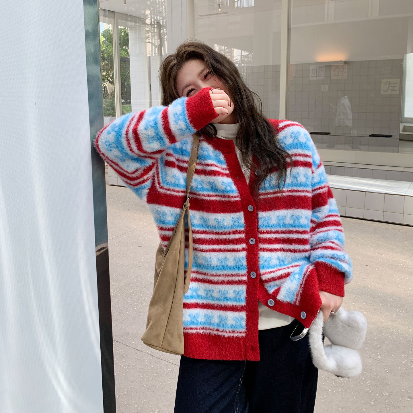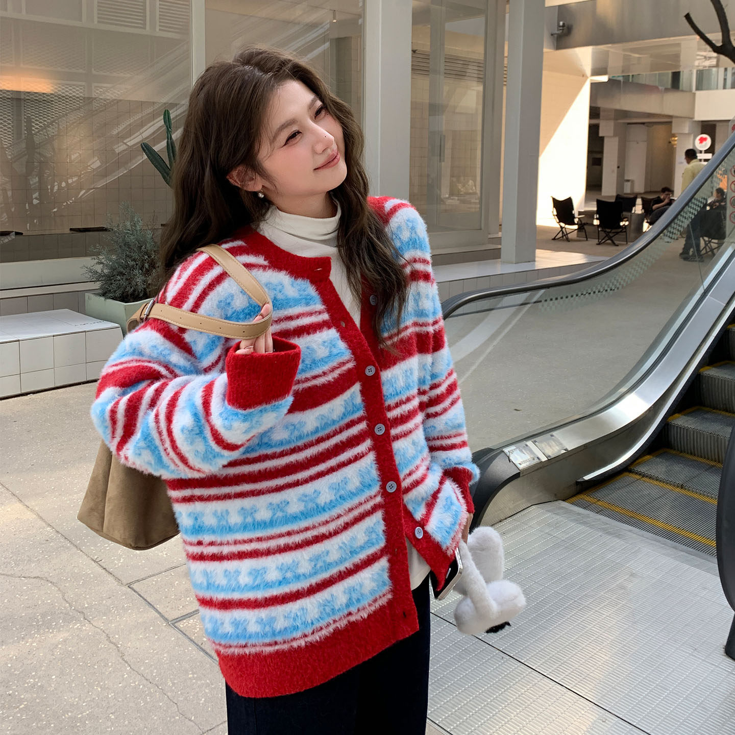 👕上身试穿这款YUZI复古条纹针织开衫,红蓝撞色的设计让我眼前一亮。红蓝的碰撞,既时尚又温柔,仿佛是秋冬的色彩调色盘。而且,它的软糯亲肤感更是让人爱不释手。穿上它,仿佛整个世界都变得温柔起来。