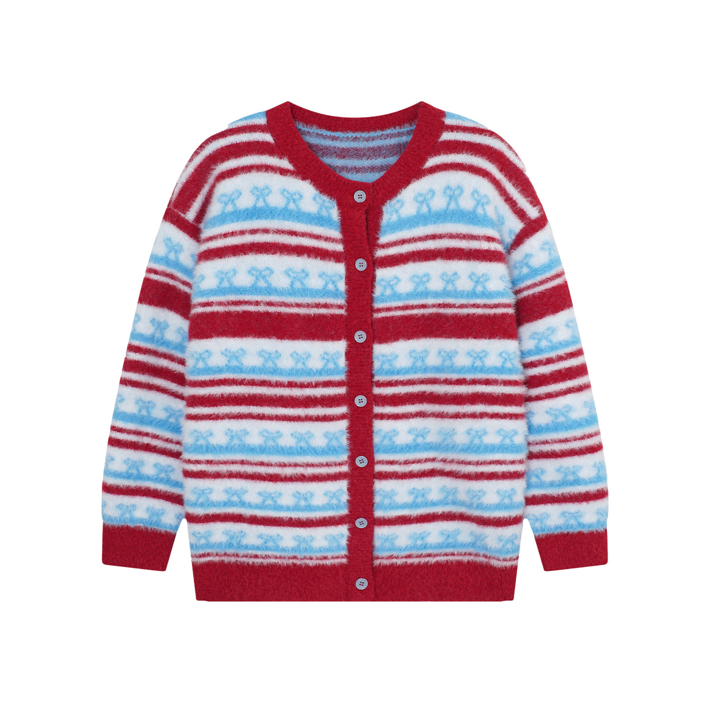 红蓝开衫条纹宽松复古