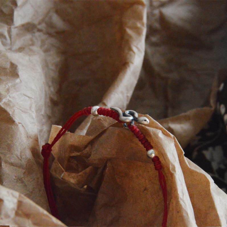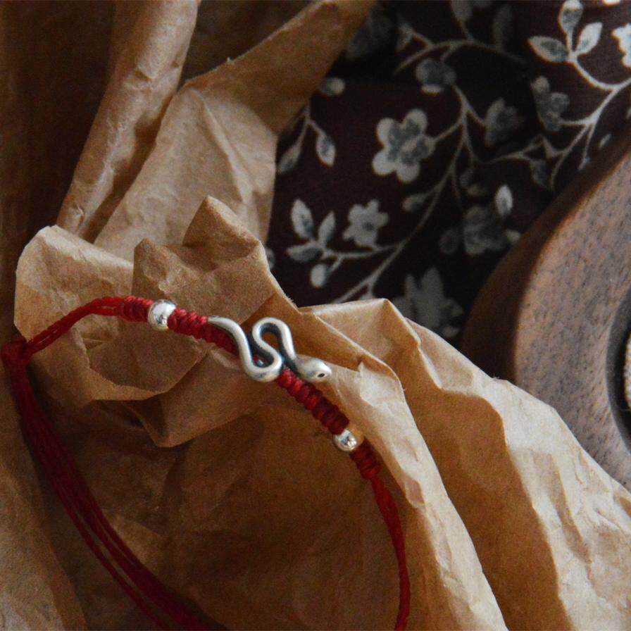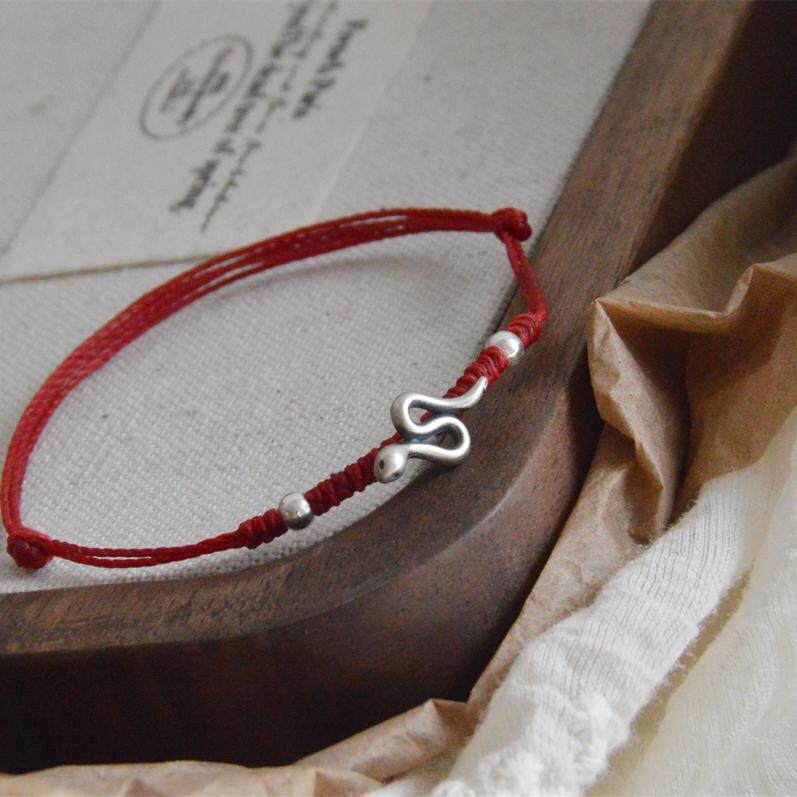 📚 「小灵蛇」本命年红绳蛇年手绳纯银925银蛇银珠复古百搭手链