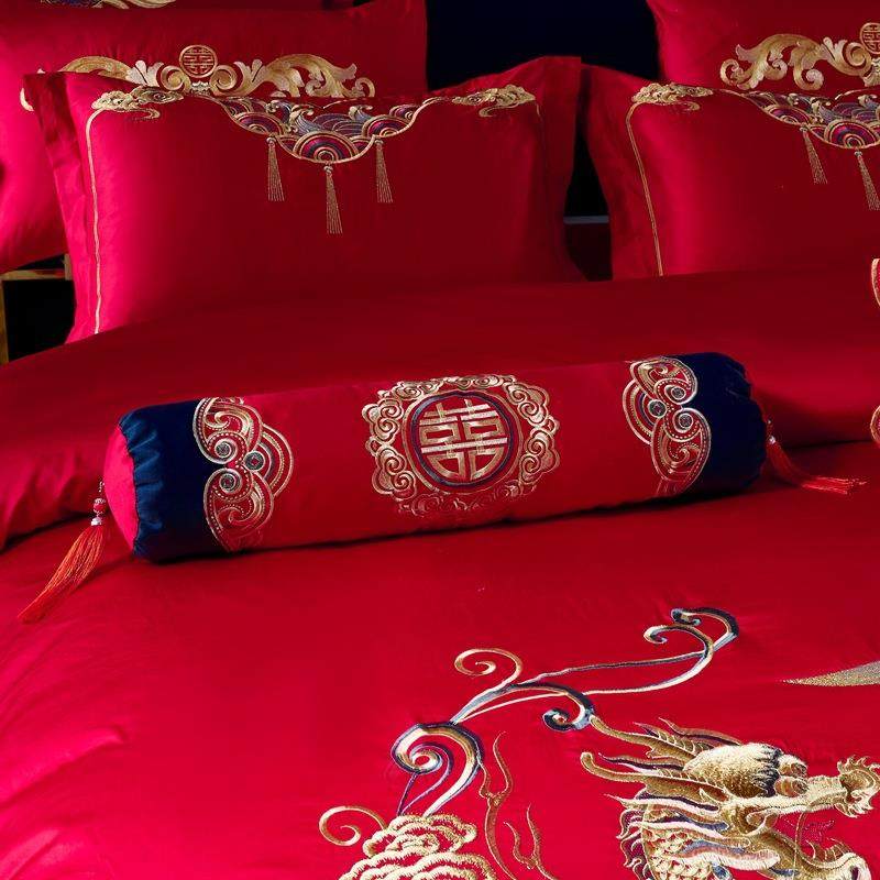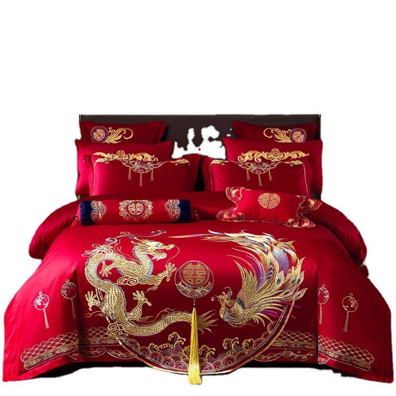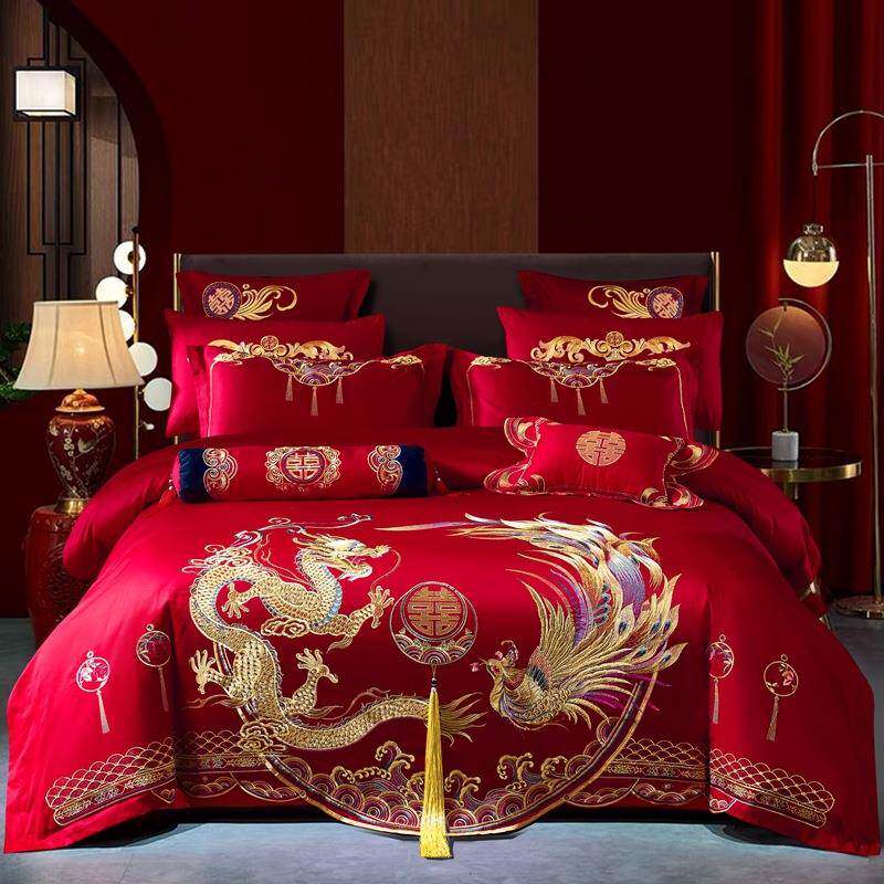 📚 龙凤刺绣四件套大红色结婚床上用品十件套全棉被套南通叠石桥家纺
