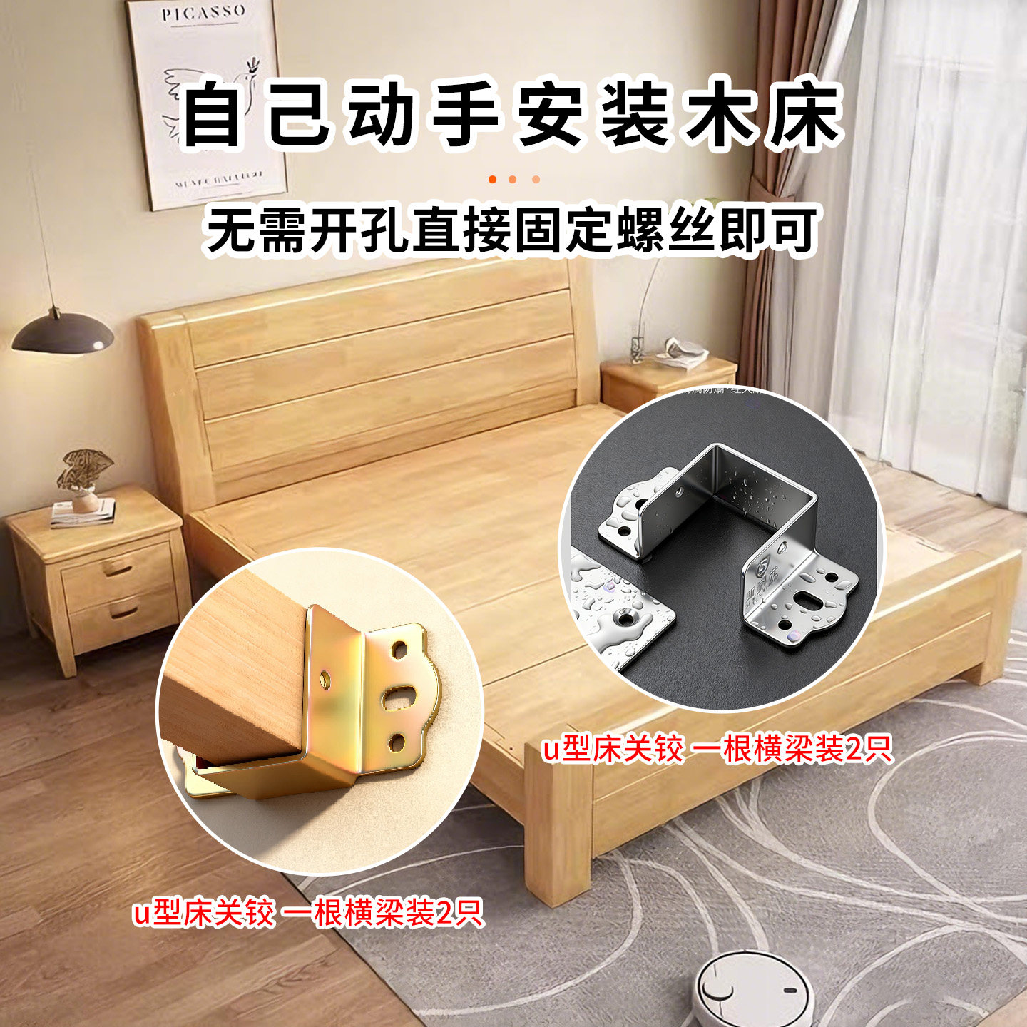 📚 加厚床关铰U形床档实木床横梁托架床耳朵床挂钩插扣床板固定托架