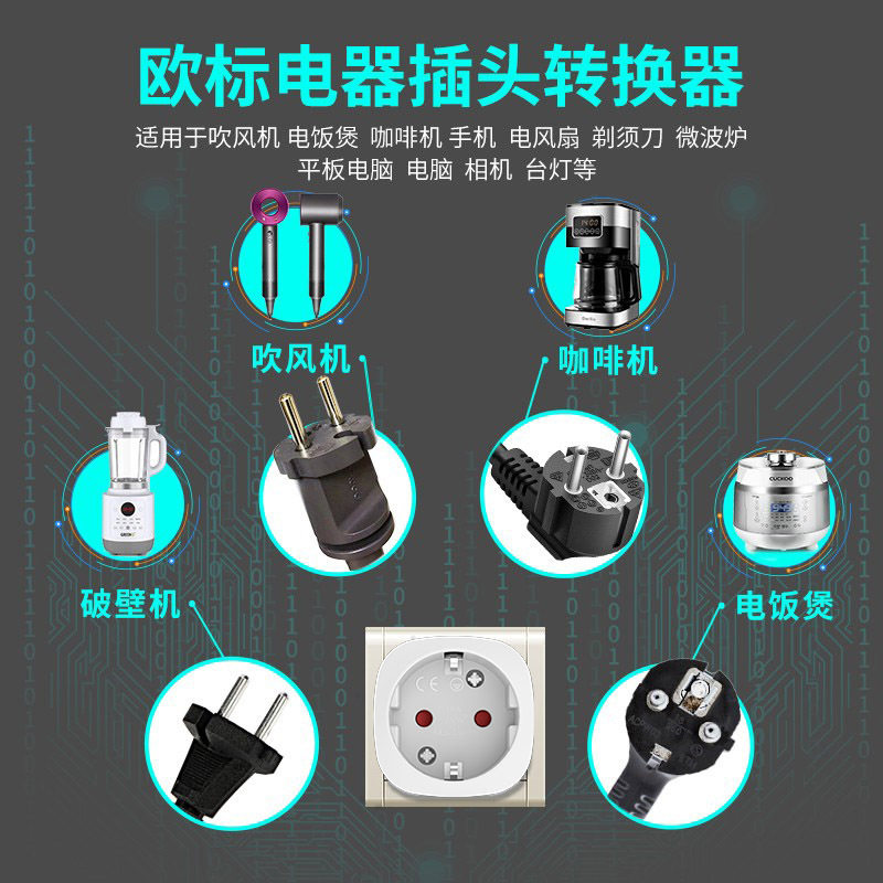 📚 欧标德标转国内16A250V插头韩国日本虎牌象印电饭煲转换插座欧洲