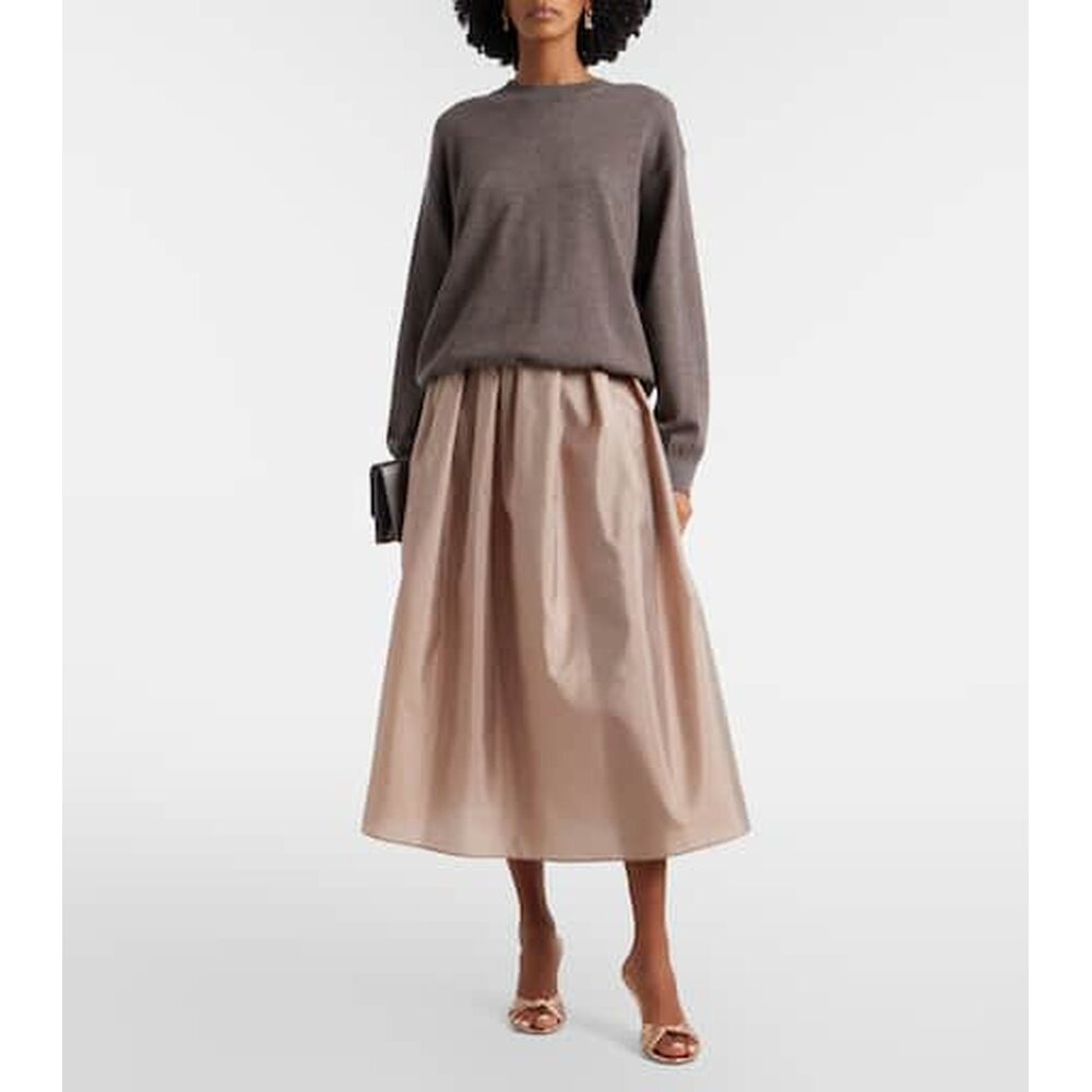 📚 1h可退 香港直邮'S Max Mara 女士 Effetto 褶裥塔夫绸中长半身裙