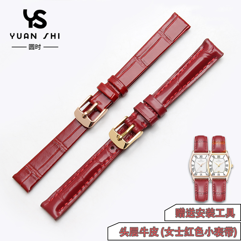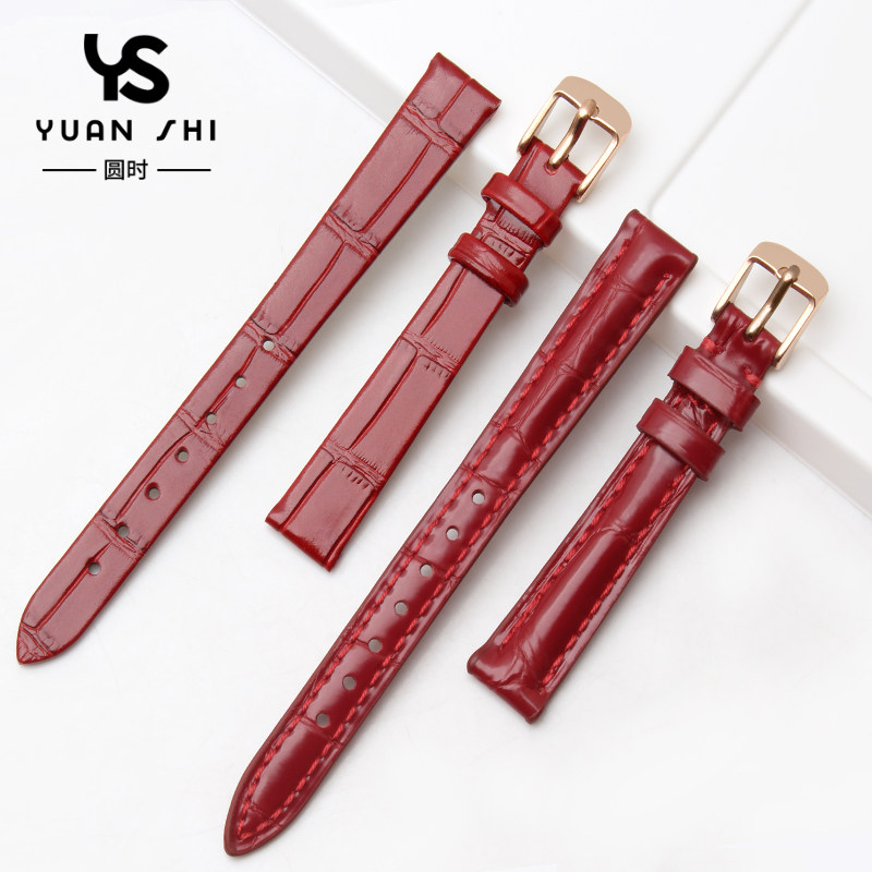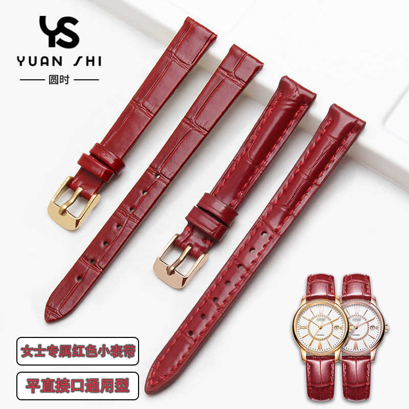 📚 手表带女真皮适配卡西欧罗西尼天王邦顿卡梭表链14 16 18mm红色