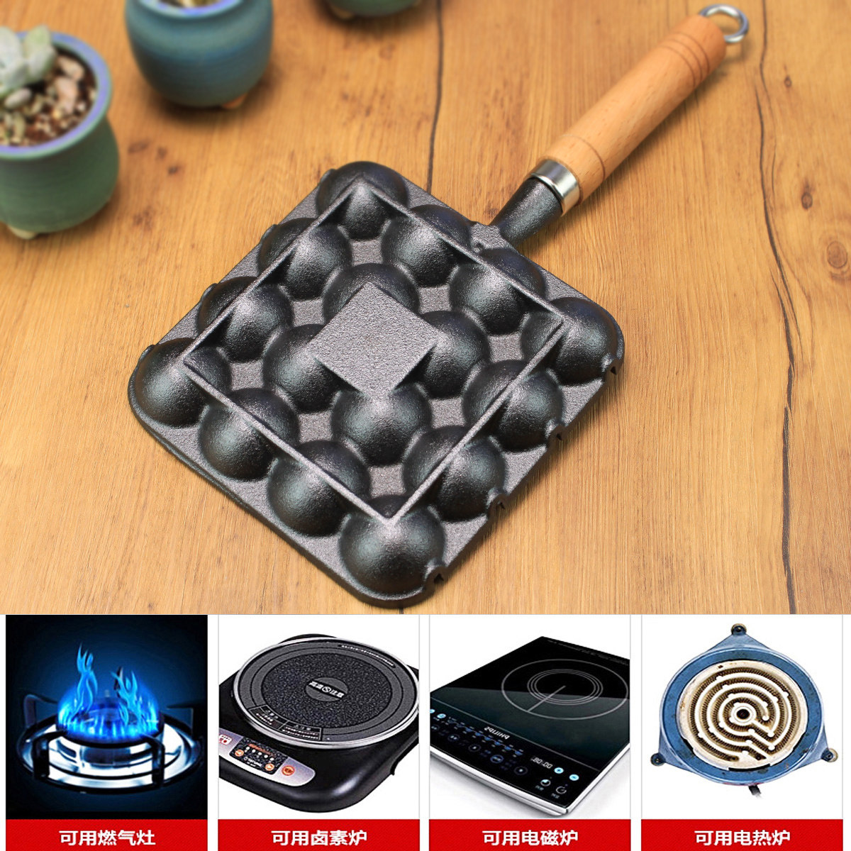 📚 铸铁章鱼小丸子锅无涂层家用不粘锅烧鹌鹑蛋模具烤盘电磁炉燃气灶