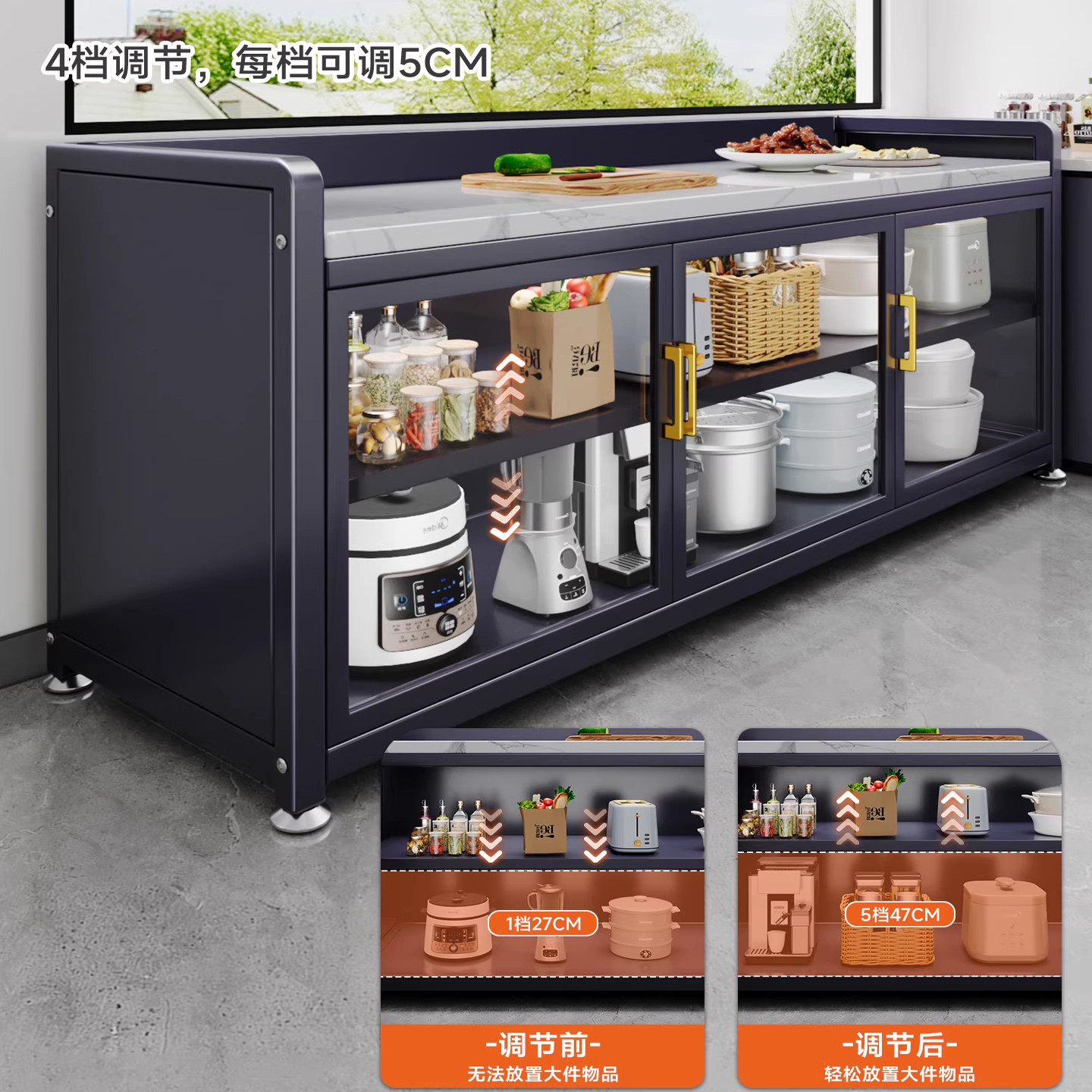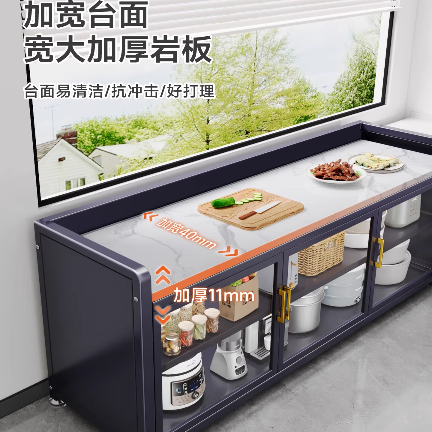📚 解忧岩板厨房置物柜切菜桌操作台多层餐边柜储物柜可移动小岛台