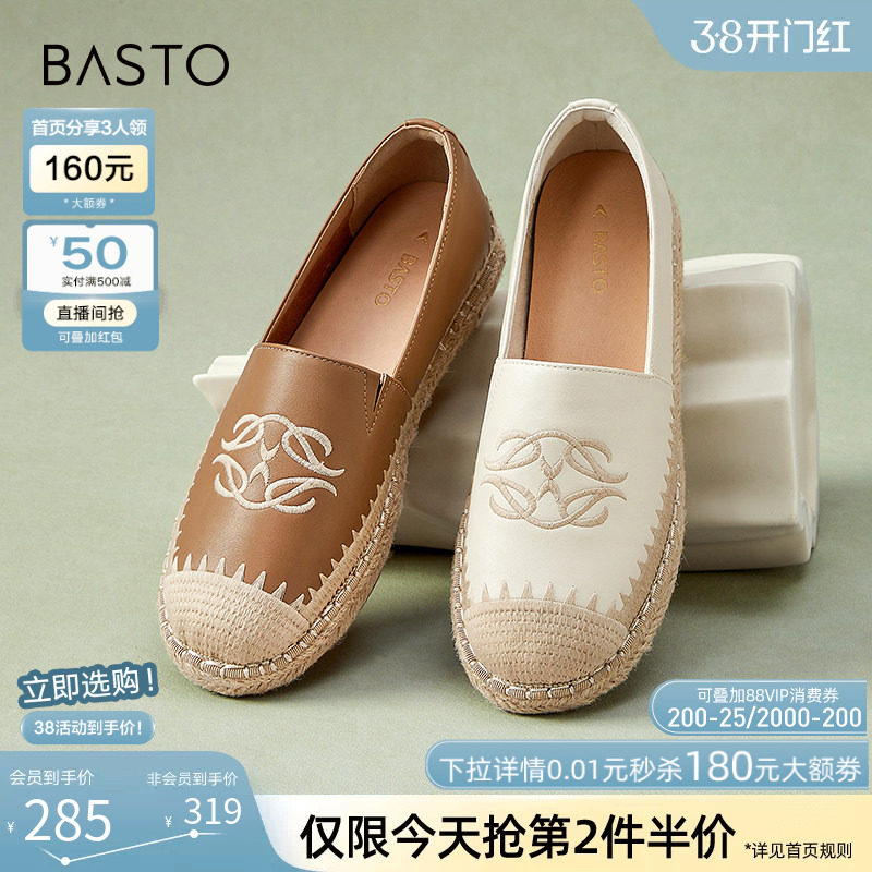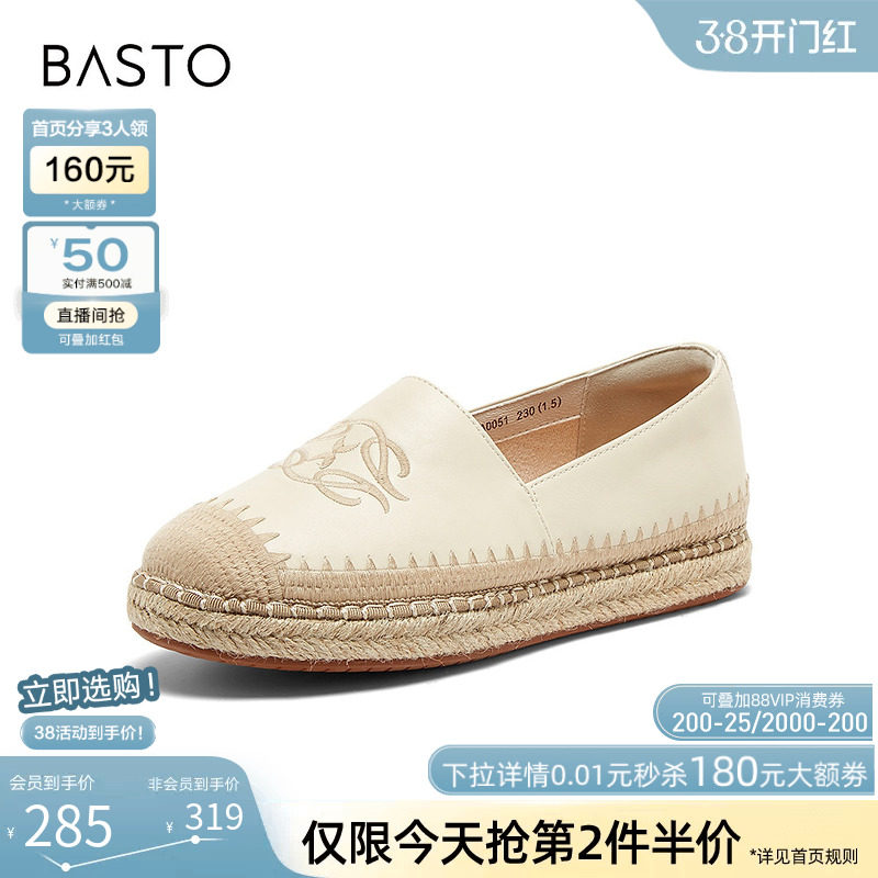 📚 百思图春新款休闲懒人一脚蹬小香风渔夫鞋平底女单鞋A0051AA4