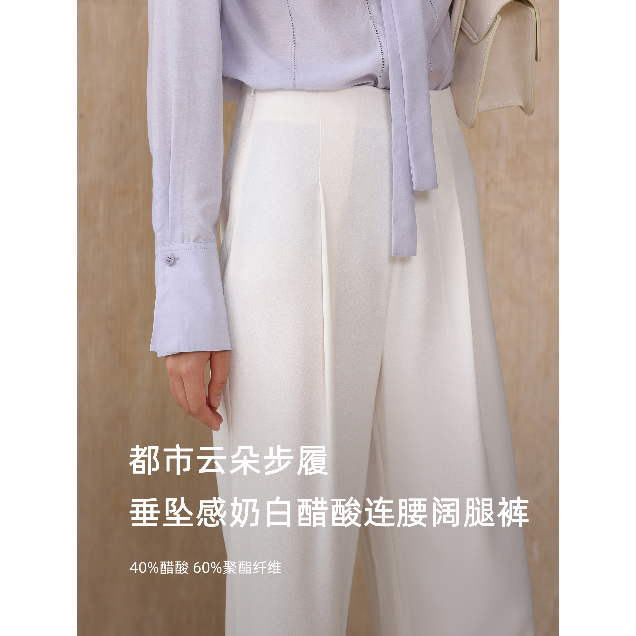 📚 芝美日禾 都市云朵步履醋酸凉感连腰显瘦防透白小个子阔腿裤