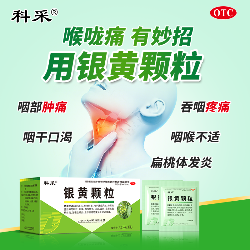 📚 科采 银黄颗粒20袋急性咽喉炎声音嘶哑咽喉不适清利咽喉高品质