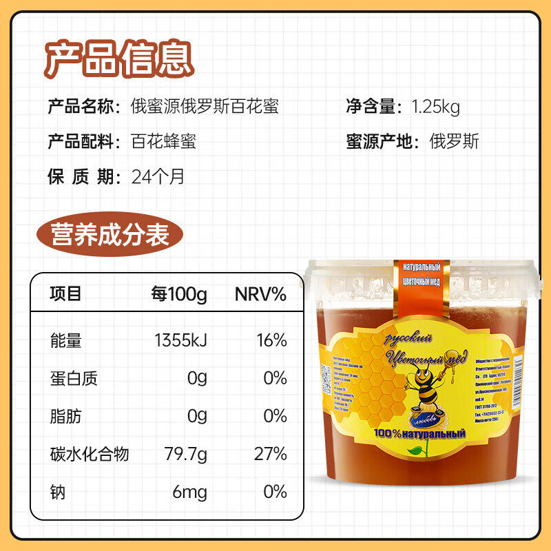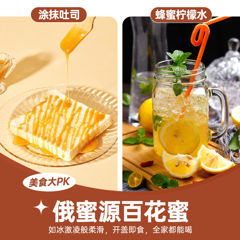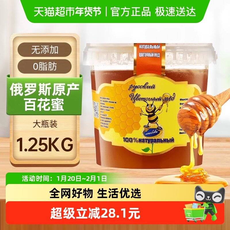 📚 俄罗斯原装进口俄蜜源百花蜜1250g大桶装纯正天然椴树蜜结晶蜂蜜