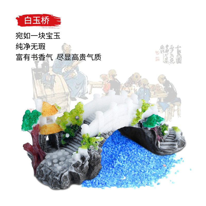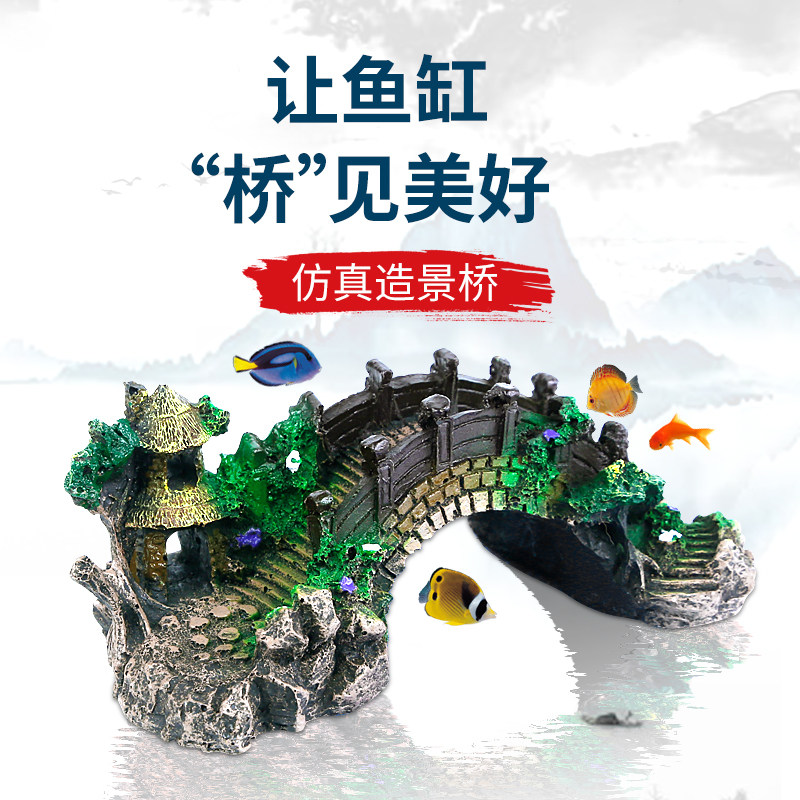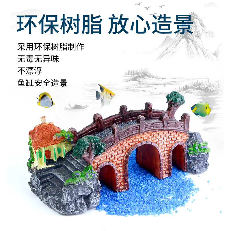 📚 养鱼用品陶瓷水族鱼缸造景石头装饰桥小桥小摆件拱桥大号仿真摆设
