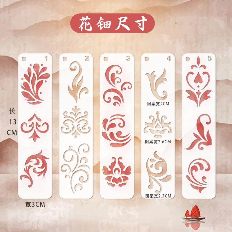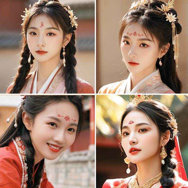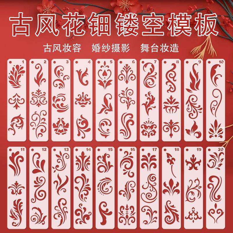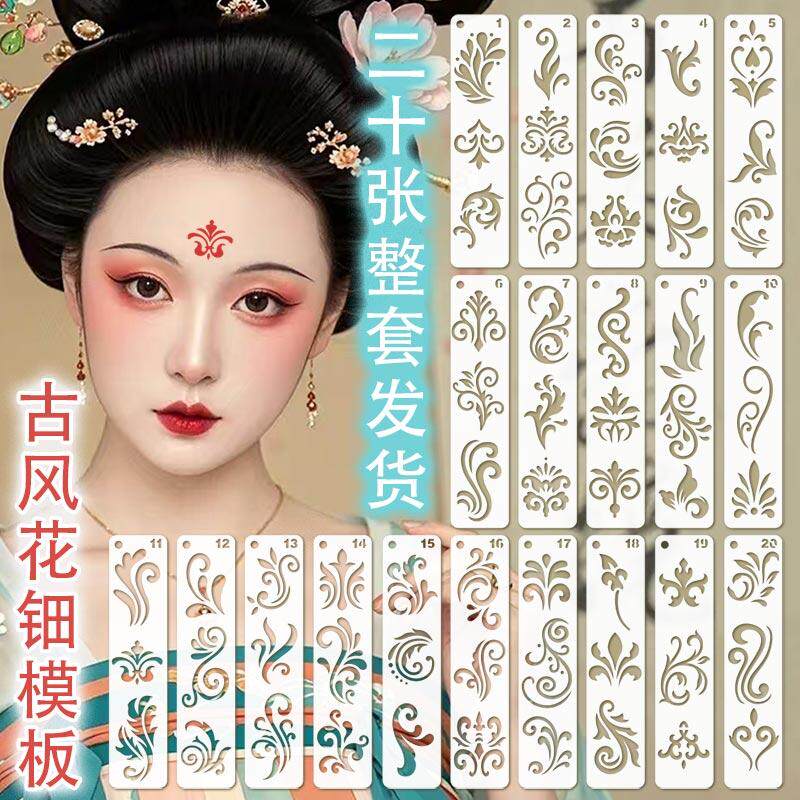 📚 眉心花钿手绘镂空古风汉服古装额头印花模具儿童模板成人彩绘套装