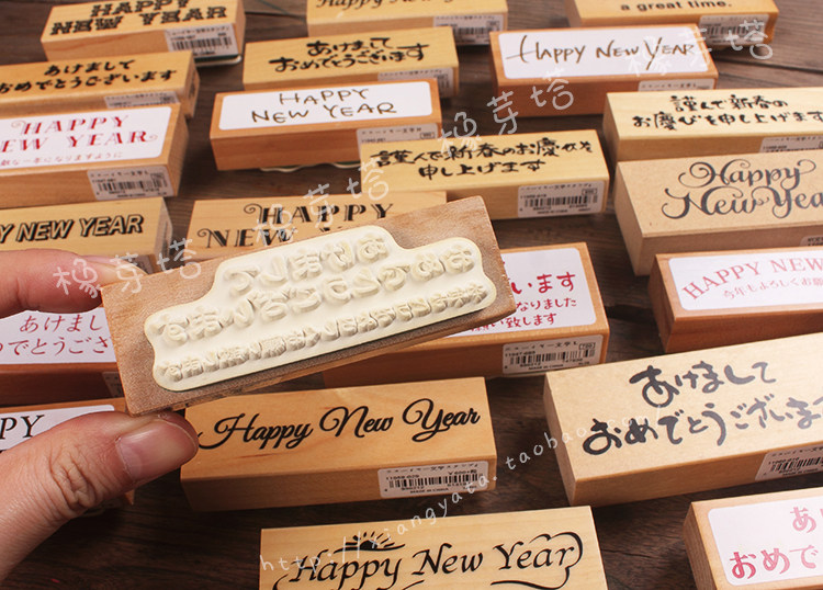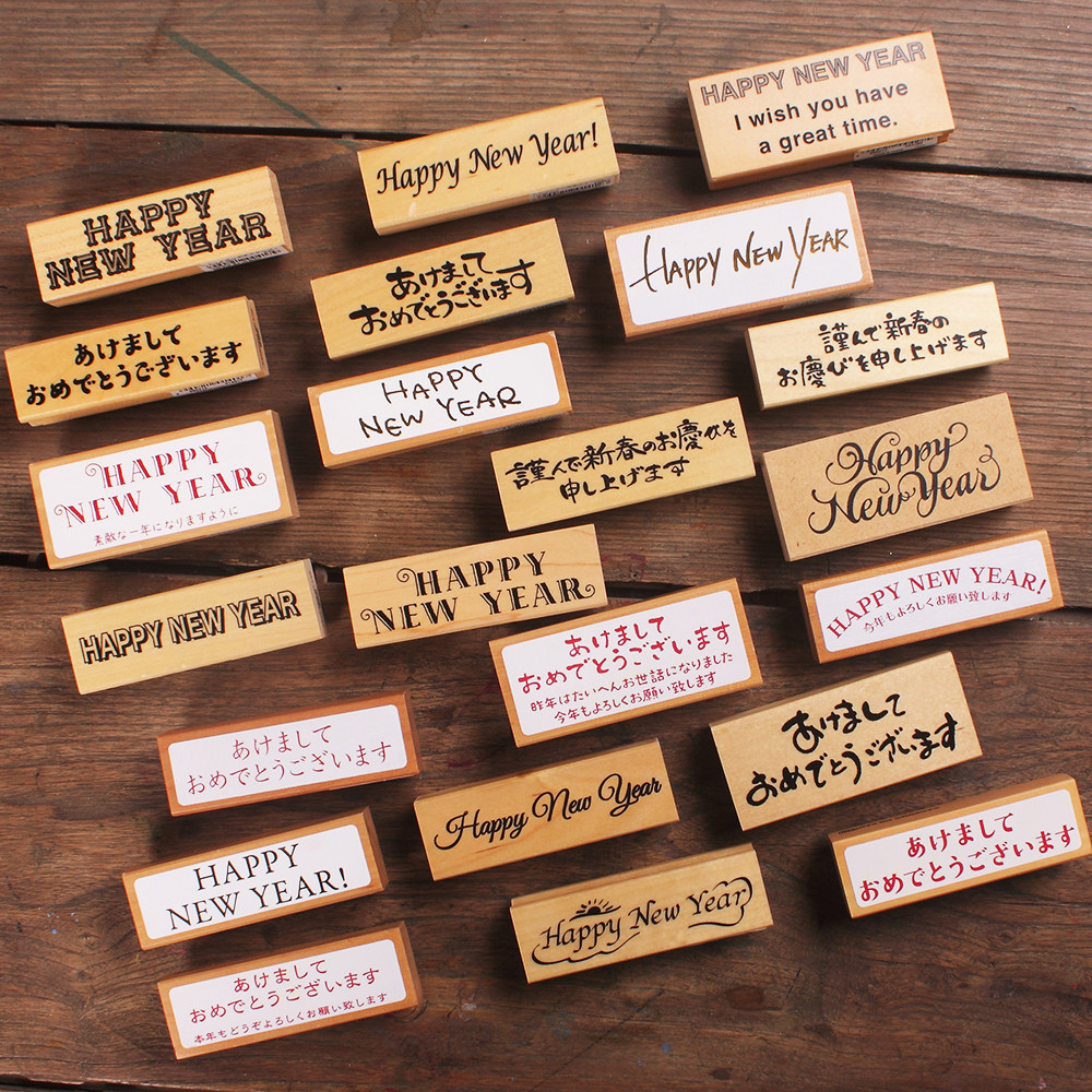 📚 日英文新年快乐祝福贺词印章日本KODOMO NO KAO 元旦感恩贺年卡章