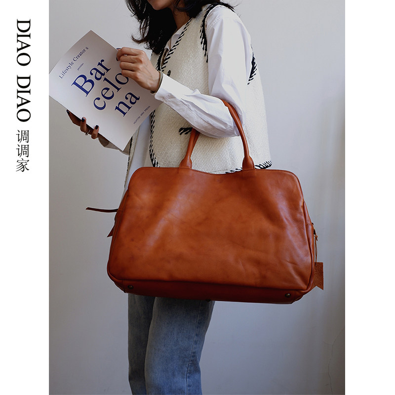 📚 2025新植鞣牛皮软皮包大容量通勤手提旅行包健身出差行李包男女款
