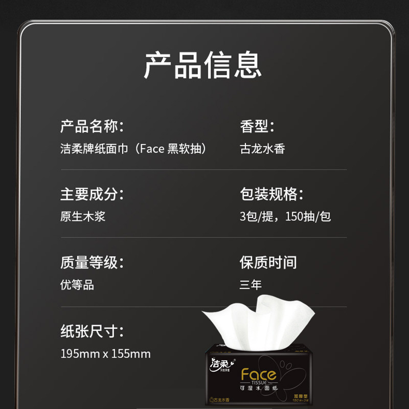 📚 洁柔黑Face抽纸150抽古龙水香加厚湿水不易破整箱纸巾整箱可湿水