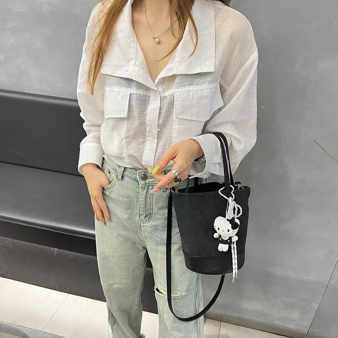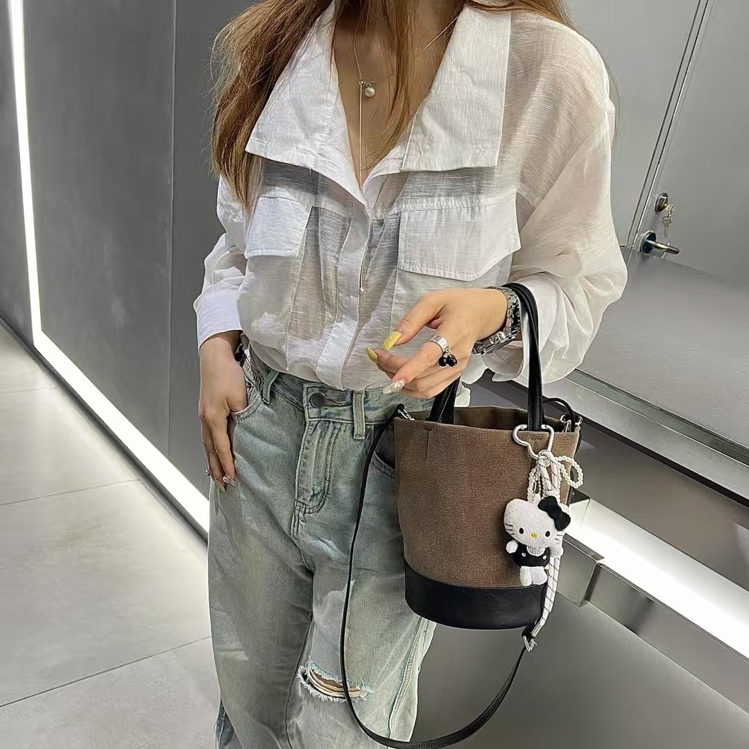 📚 MJ女包2025小众设计帆布水桶包百搭洋气小菜篮手提包斜挎单肩包潮
