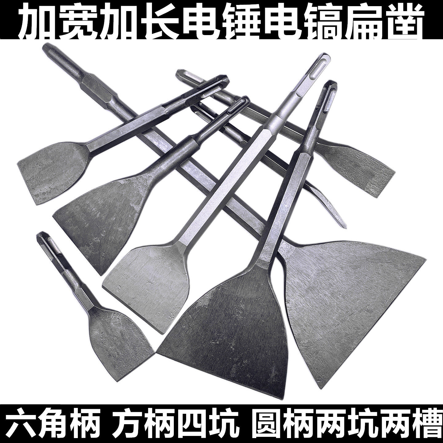 📚 冲击电锤钻头方柄铲子四坑六角小电镐加宽扁凿圆柄尖扁凿子拆电机