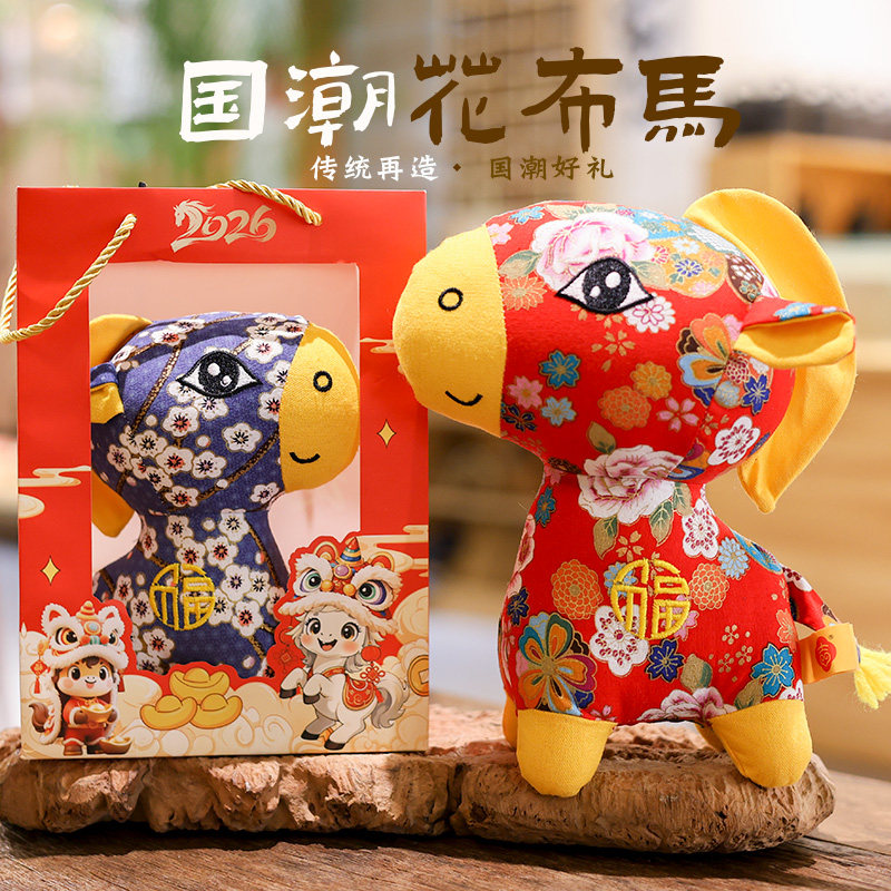 📚 2026马年吉祥物公仔生肖小马挂件毛绒玩具花布马玩偶新年礼品定制