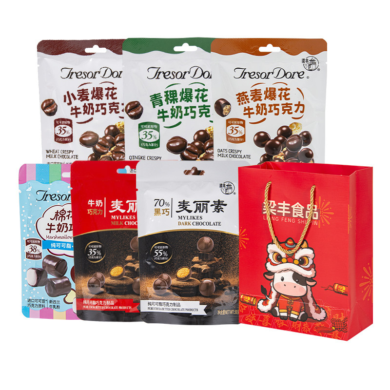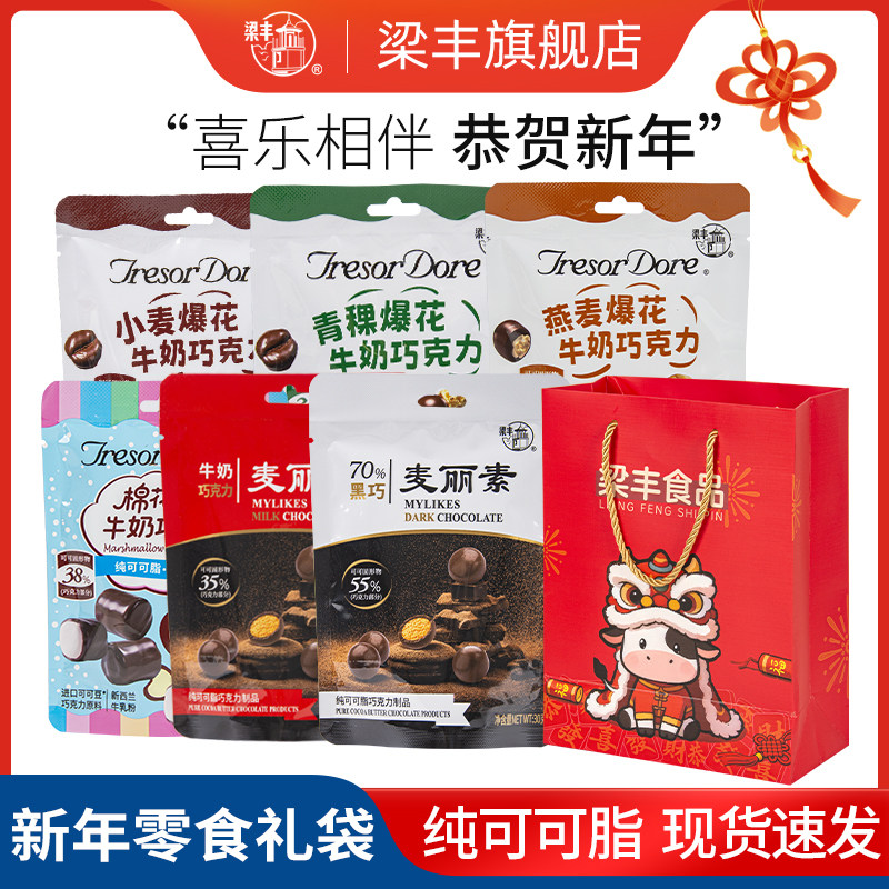 📚 梁丰新年零食礼袋纯可可脂巧克力麦丽素麦咪怀旧零食儿童年货礼