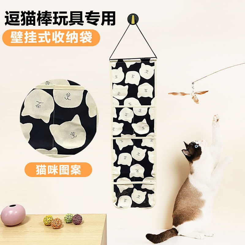 📚 Necosekai 逗猫棒收纳袋挂墙猫咪玩具收纳挂式收纳神器多层置物袋