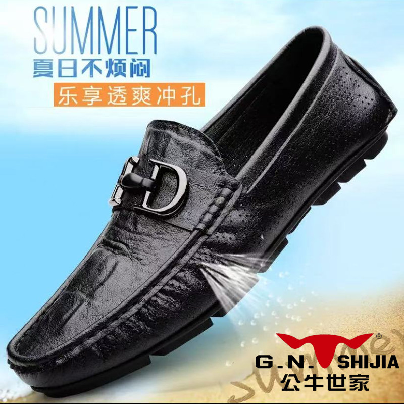 📚 公牛世家豆豆鞋男士2026新款春夏季透气一脚蹬乐福真牛皮休闲皮鞋