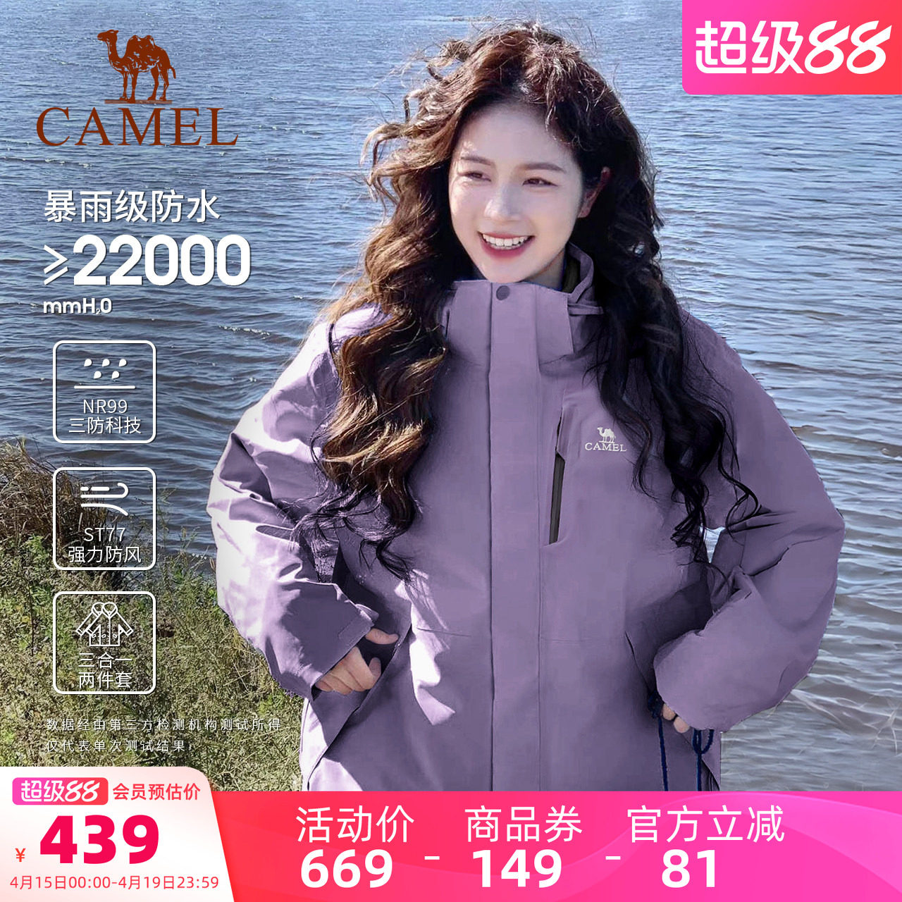 07¥ CZ007 qhAj5Tc221v¥ https://m.tb.cn/h.iosCslA 骆驼户外夜紫色冲锋衣三合一女款防风防水登山服装男春季旅游外套 --------------------- 【原售价】669元 【优惠券】149元 【券后价】520元。